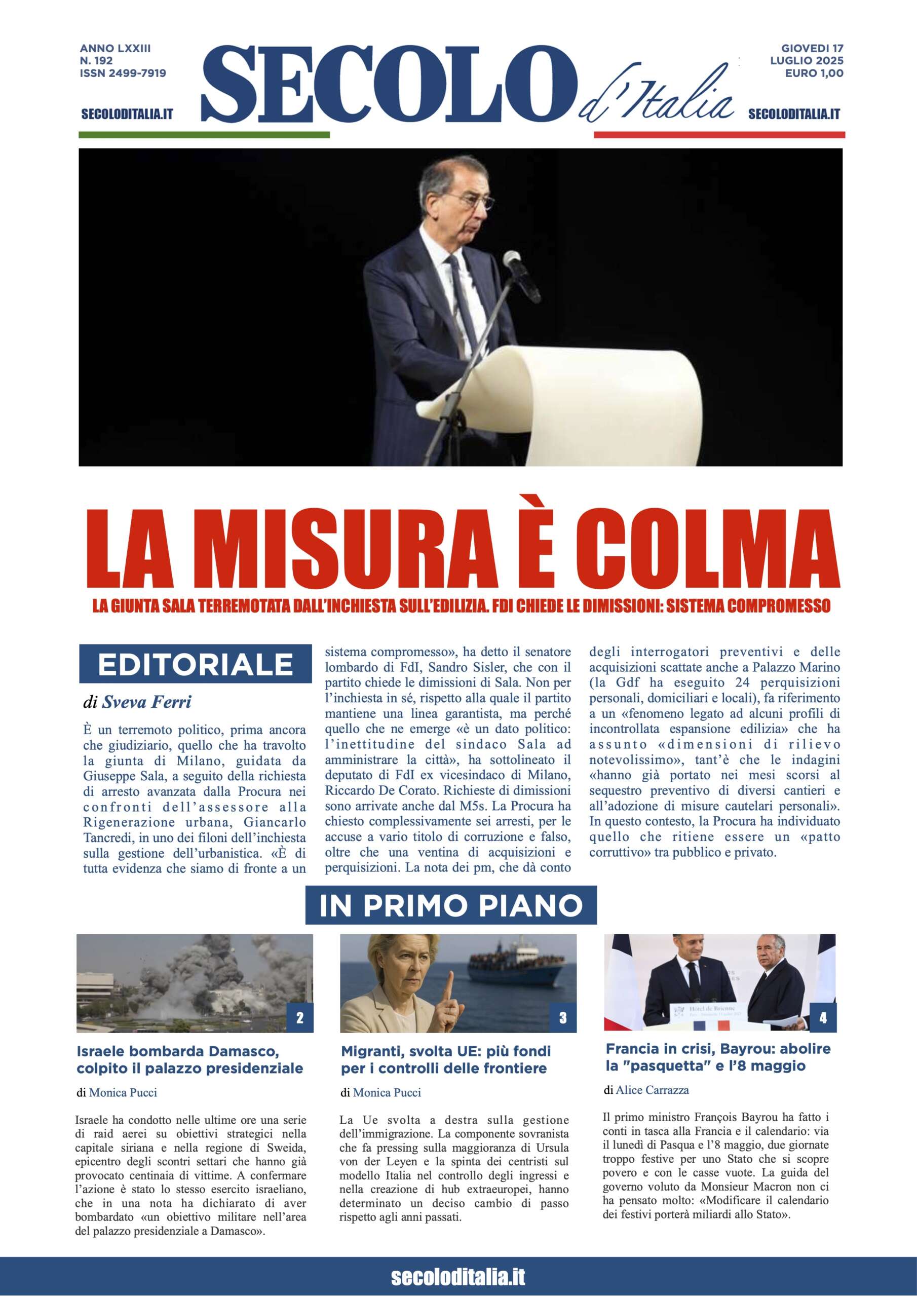 Giovedì 17 luglio 2025