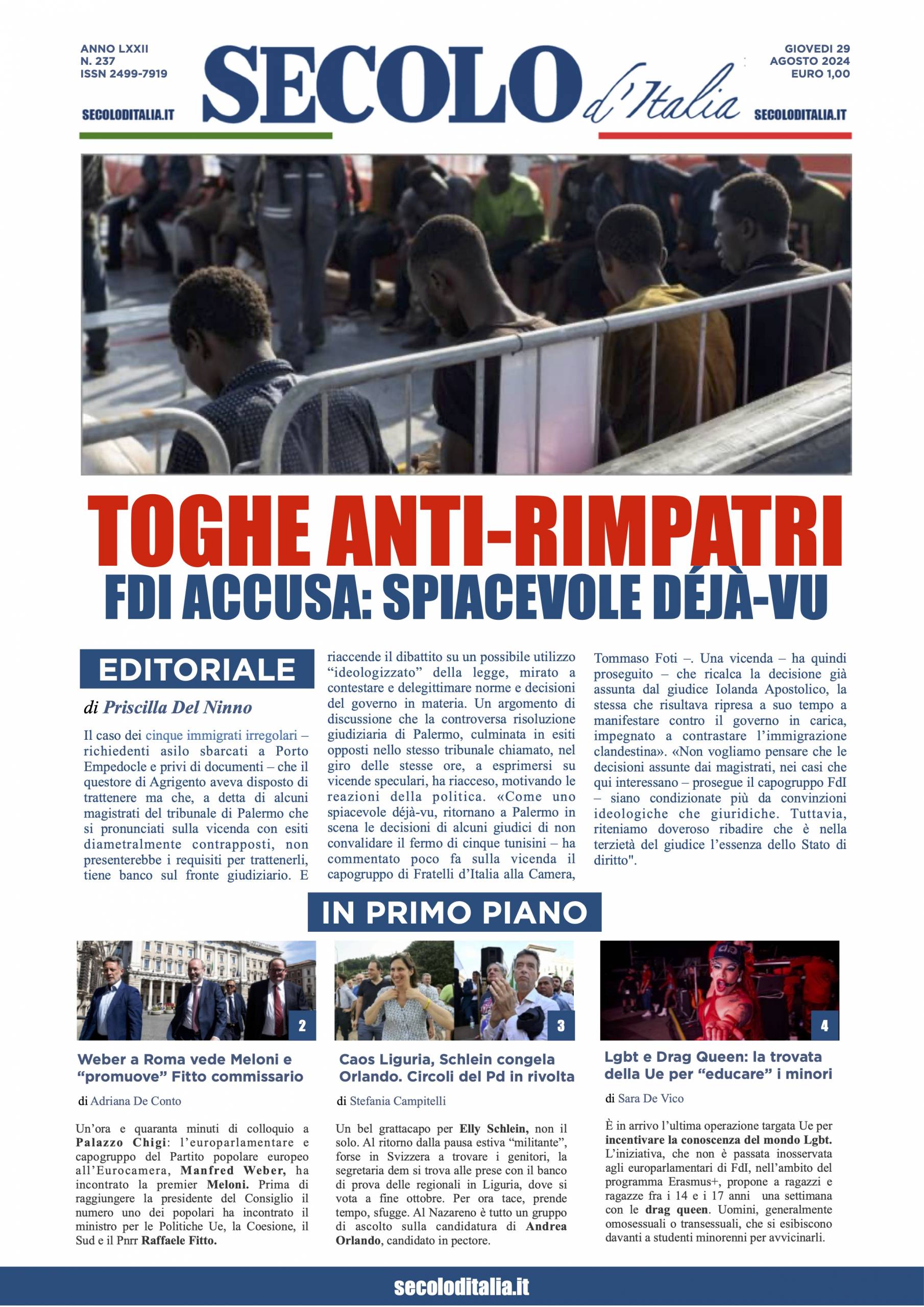 Giovedi 29 agosto 2024