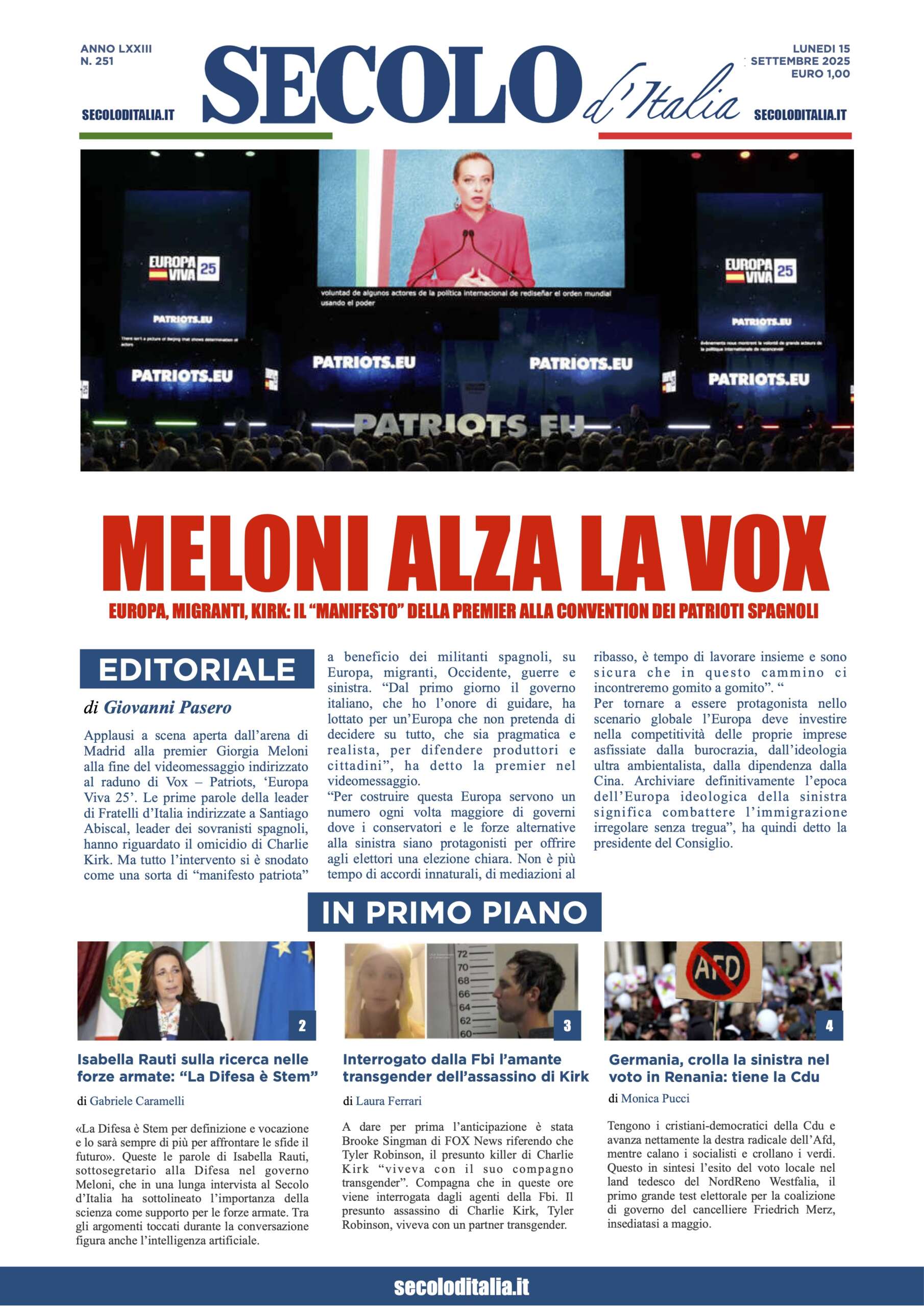 Lunedì 15 settembre 2025