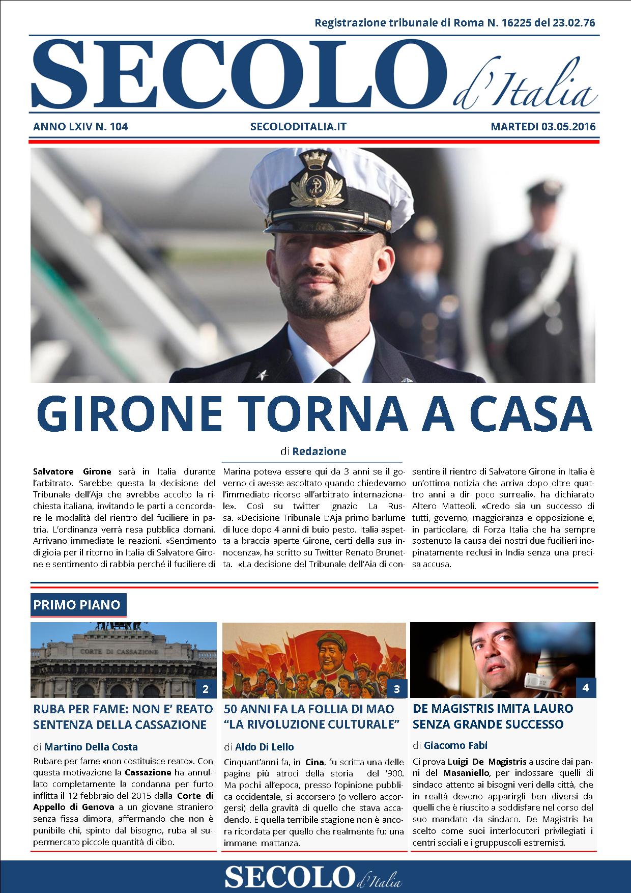 Martedì 3 maggio 2016