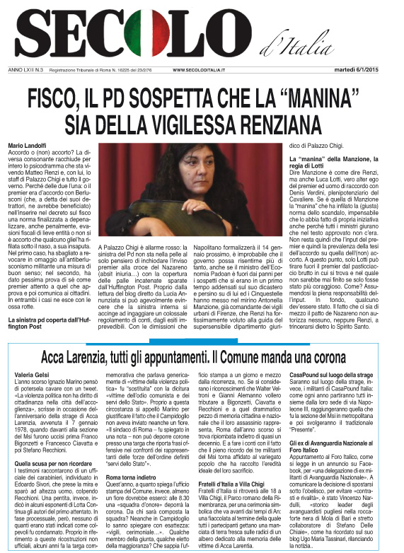 Martedì 6 gennaio 2015