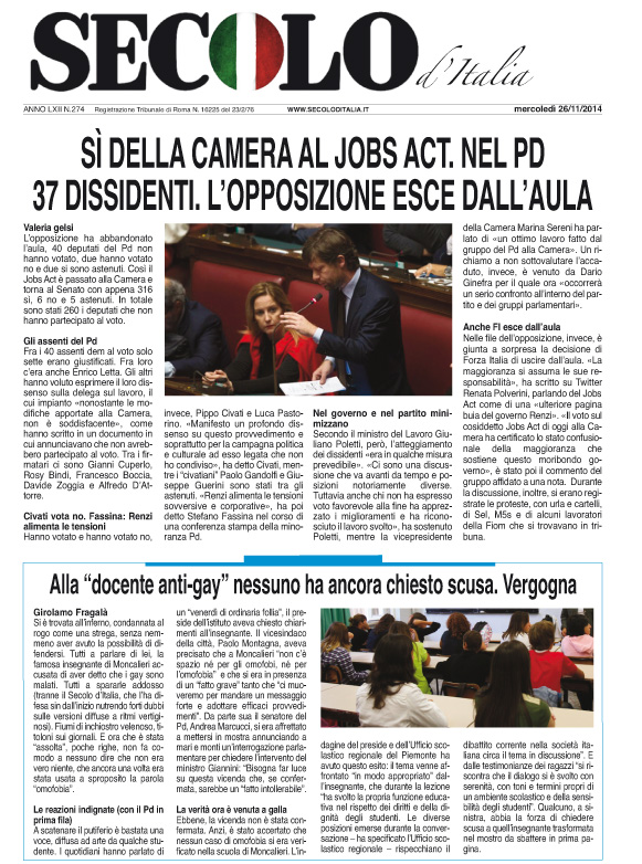 Mercoledì 26 novembre 2014