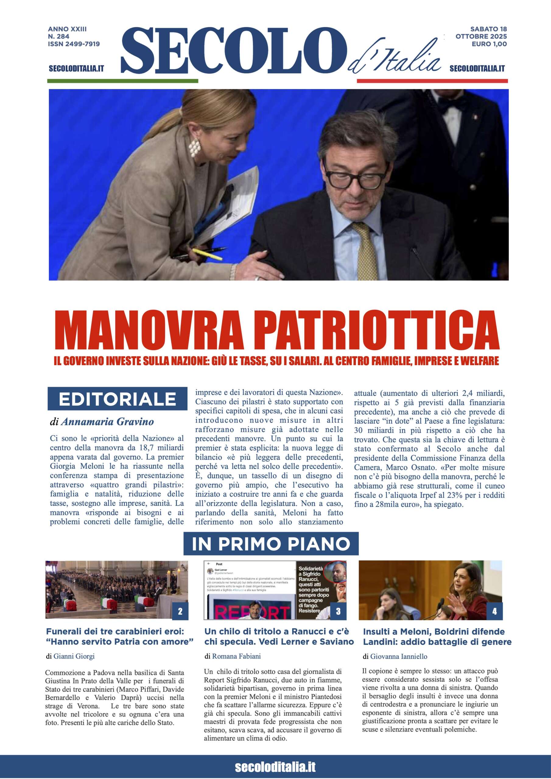 Sabato 18 ottobre 2025