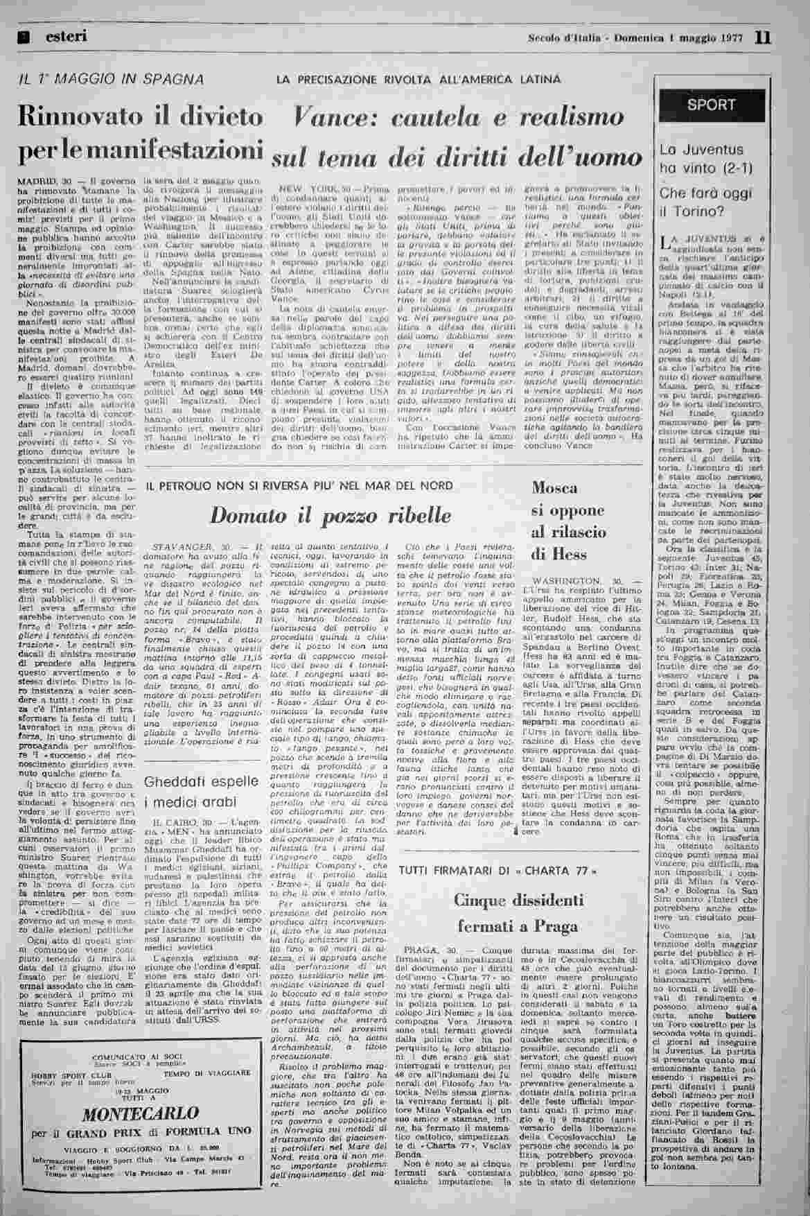domenica 1 maggio 1977