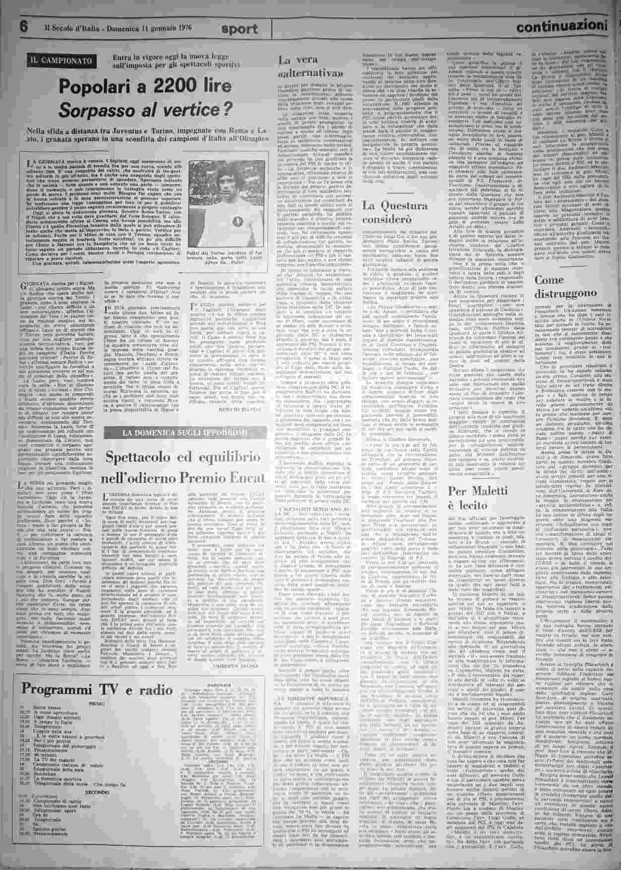 domenica 11 gennaio 1976