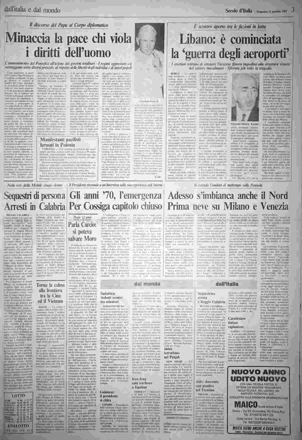 domenica 11 gennaio 1987