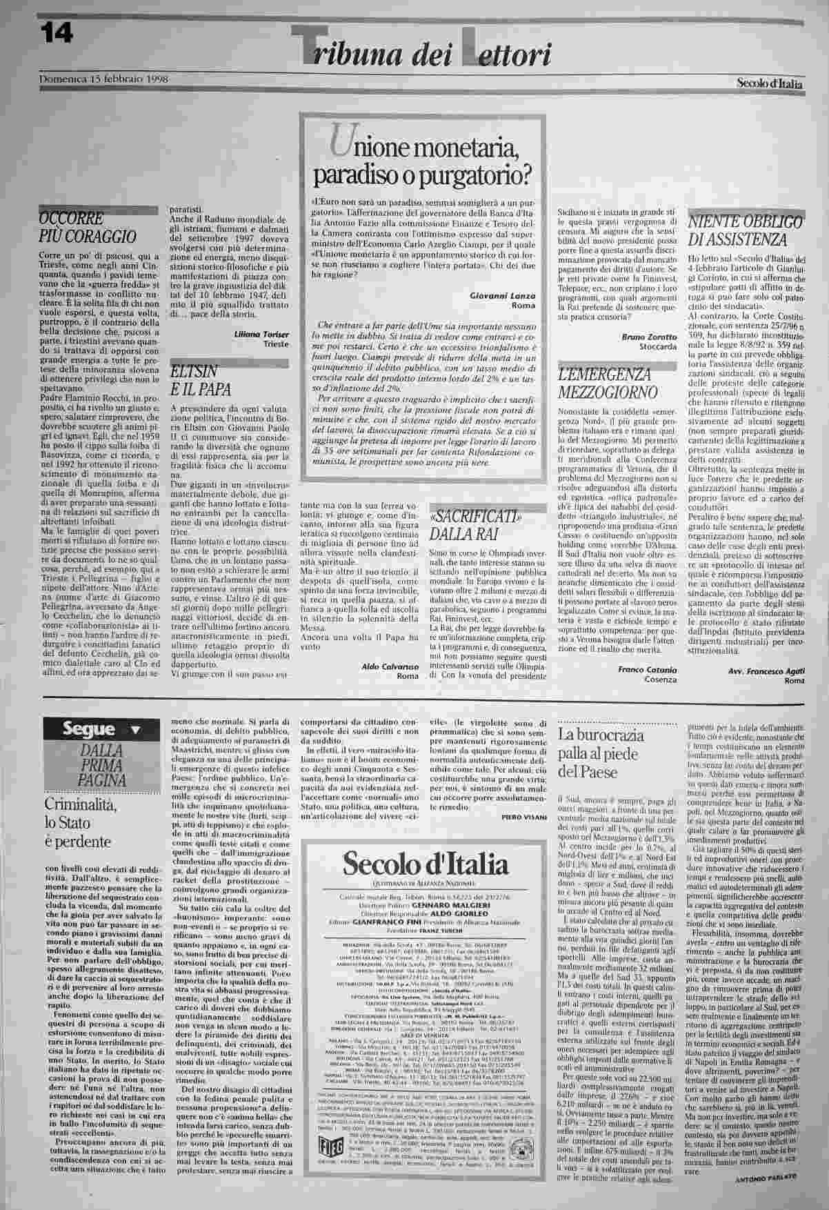 domenica 15 febbraio 1998