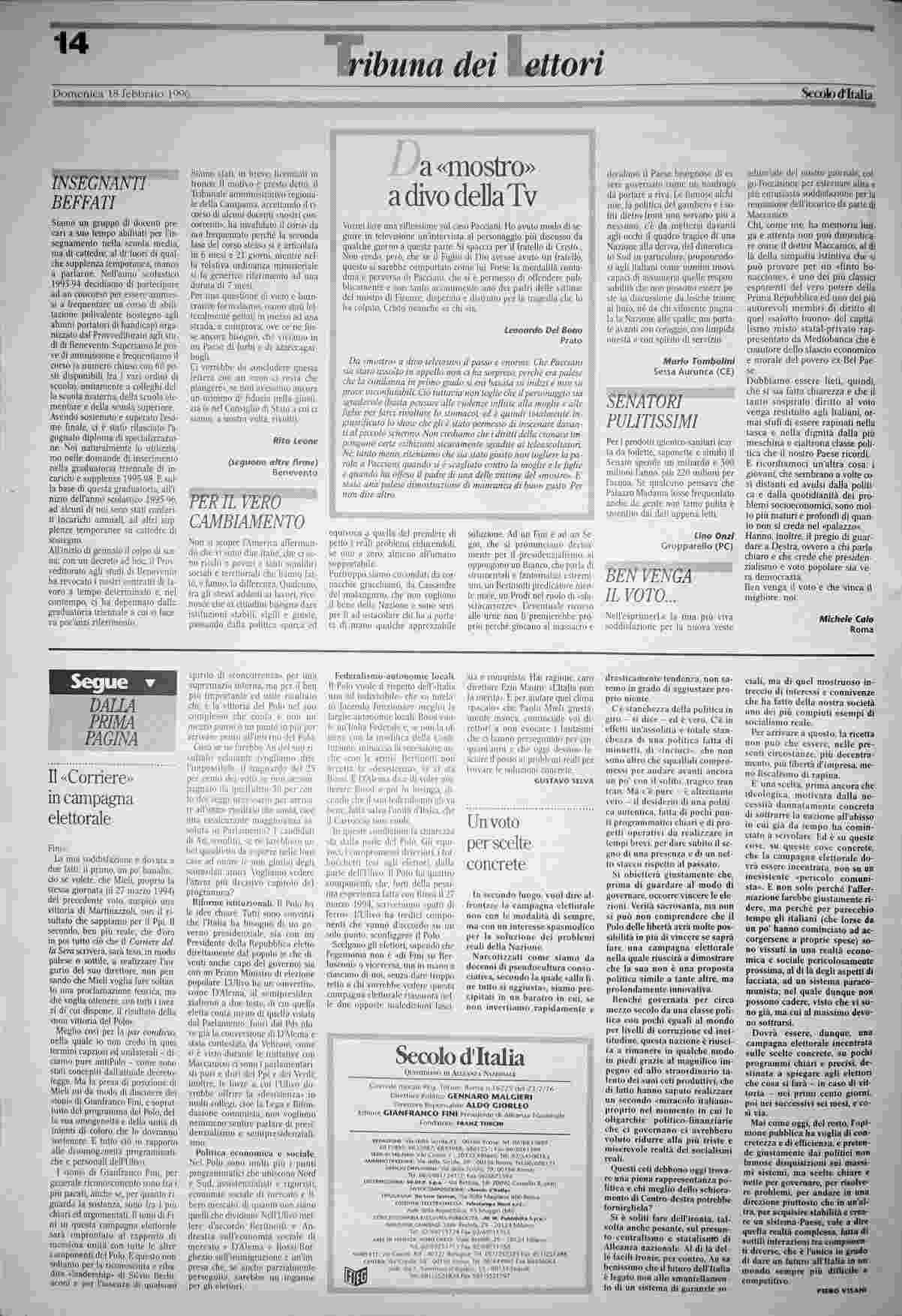 domenica 18 febbraio 1996