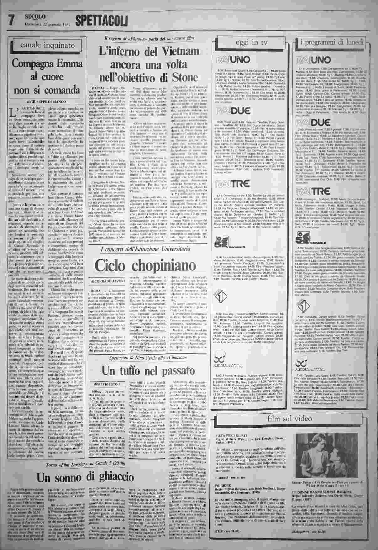domenica 22 gennaio 1989