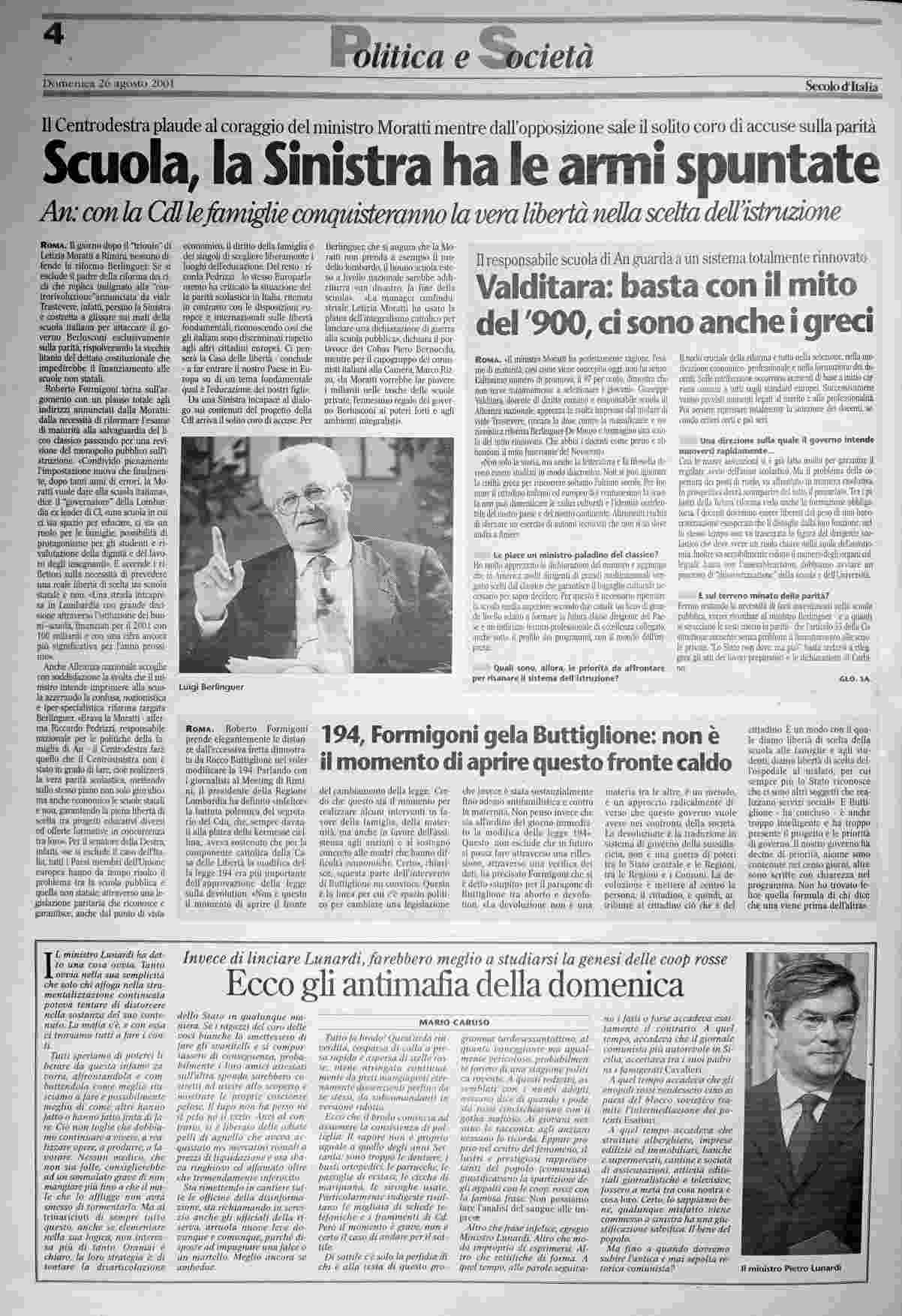 domenica 26 agosto 2001