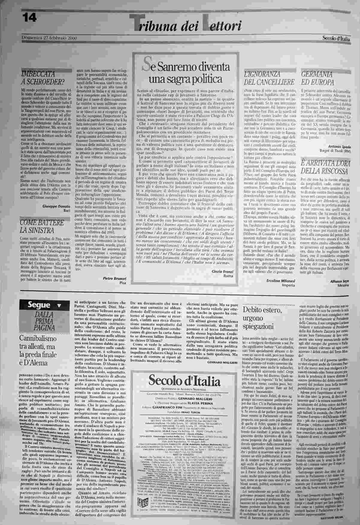 domenica 27 febbraio 2000
