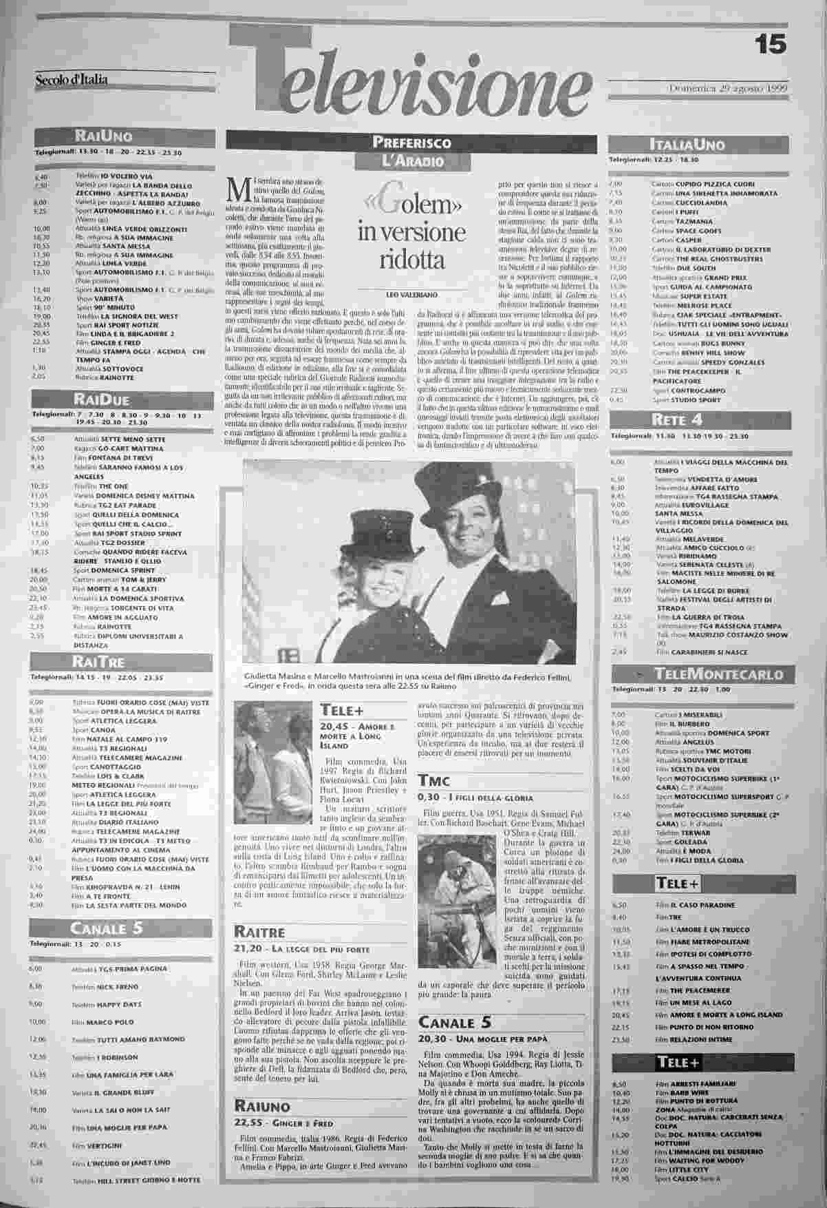 domenica 29 agosto 1999
