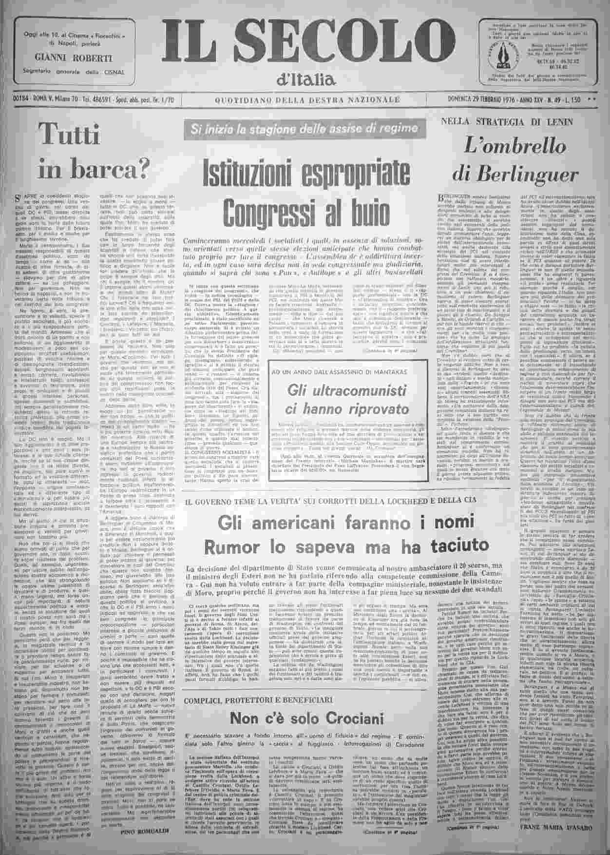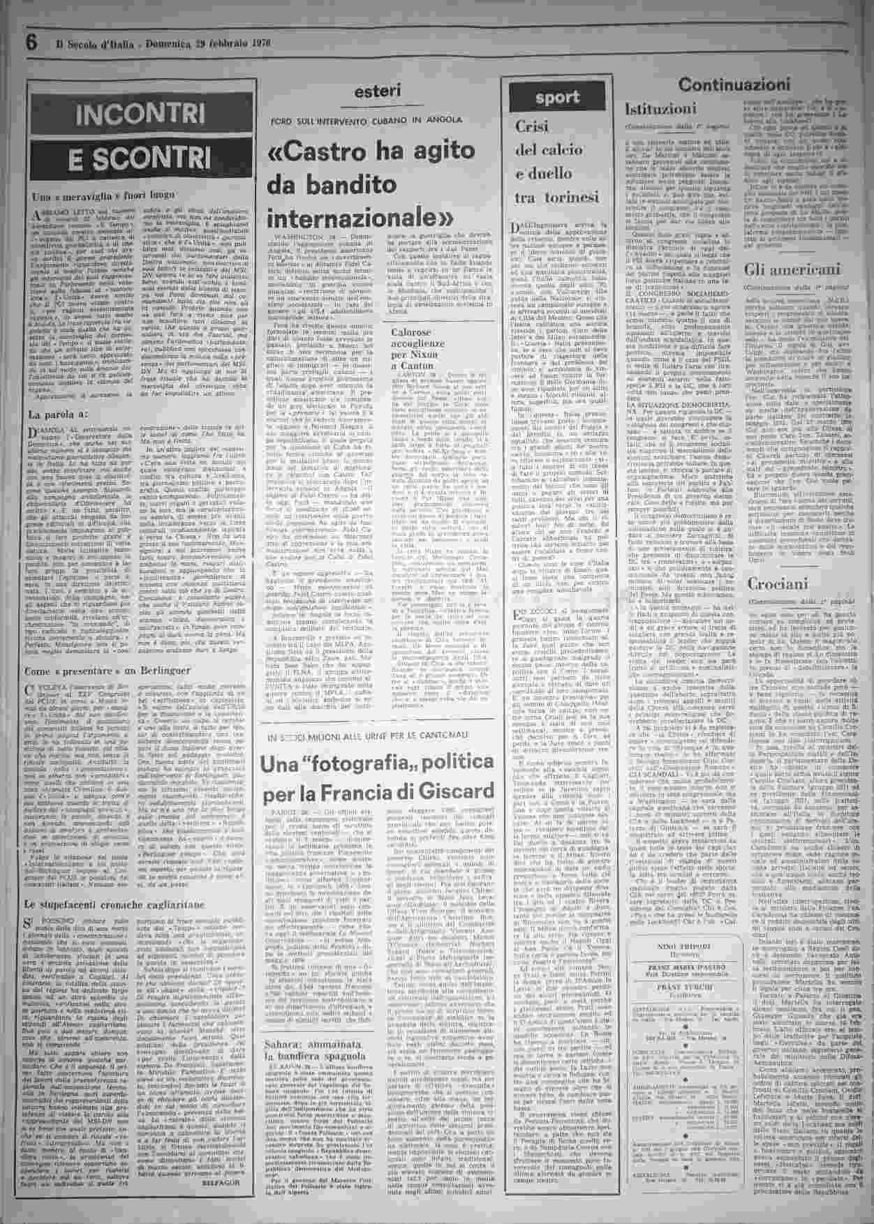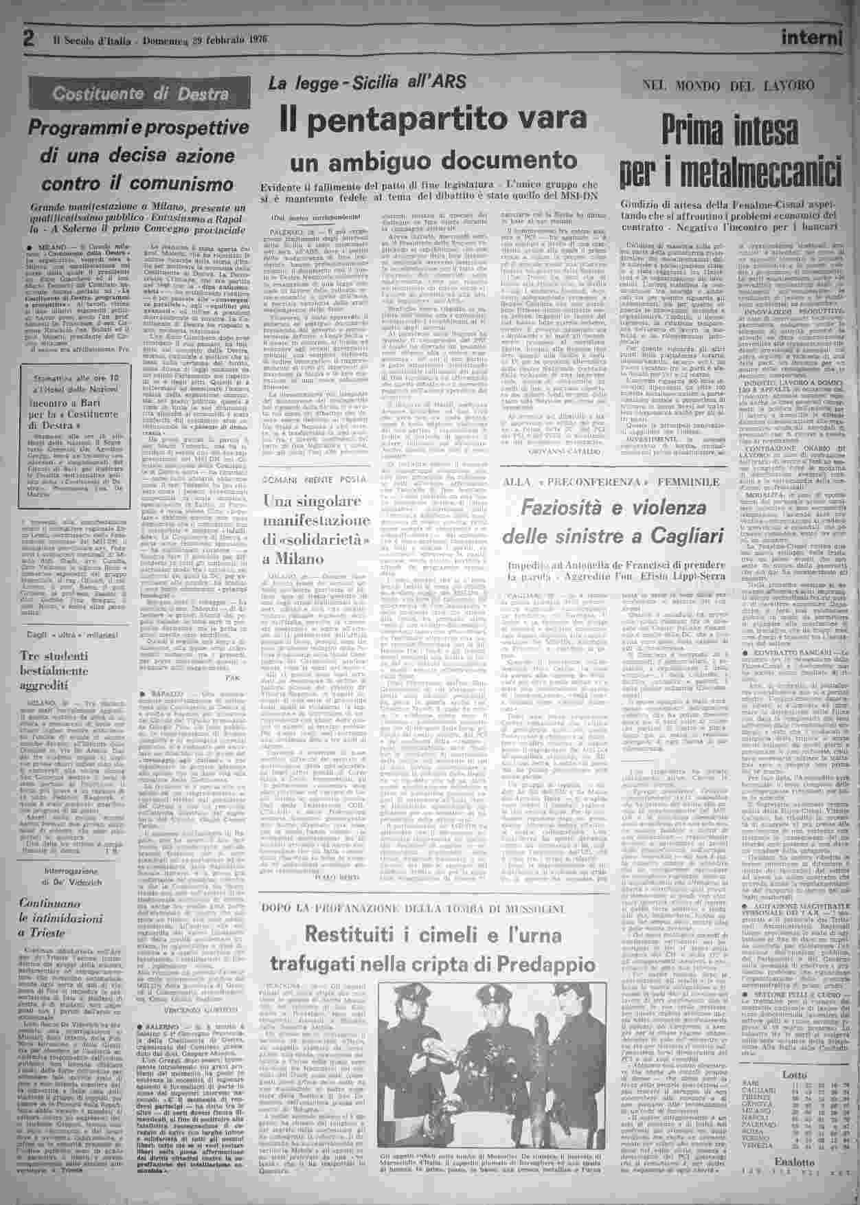 domenica 29 febbraio 1976