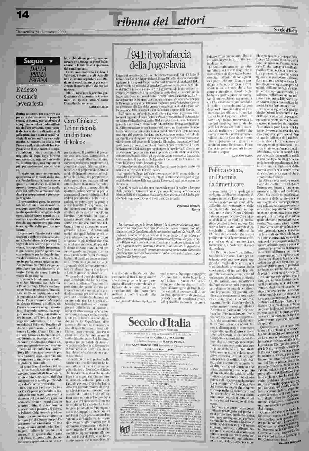 domenica 31 dicembre 2000