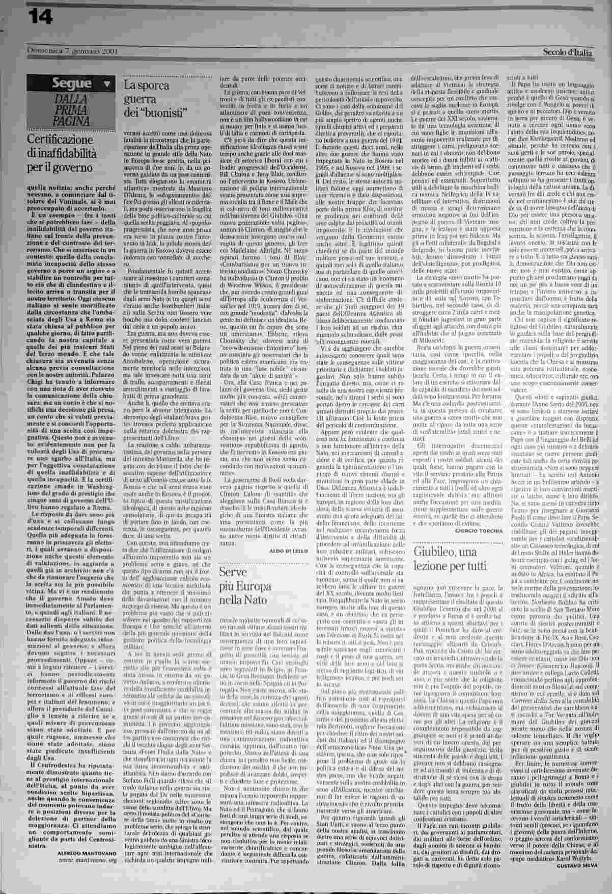 domenica 7 gennaio 2001