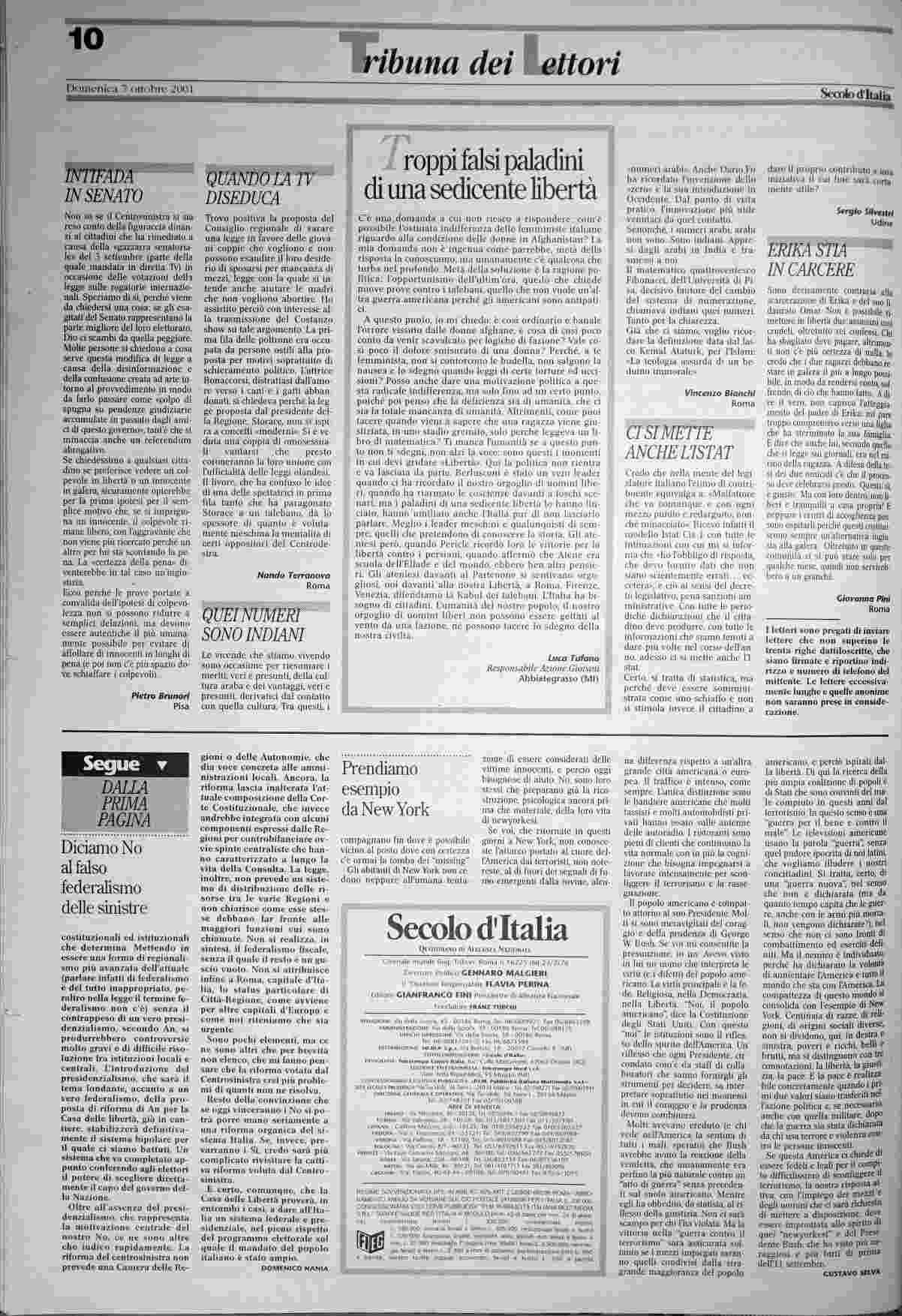domenica 7 ottobre 2001