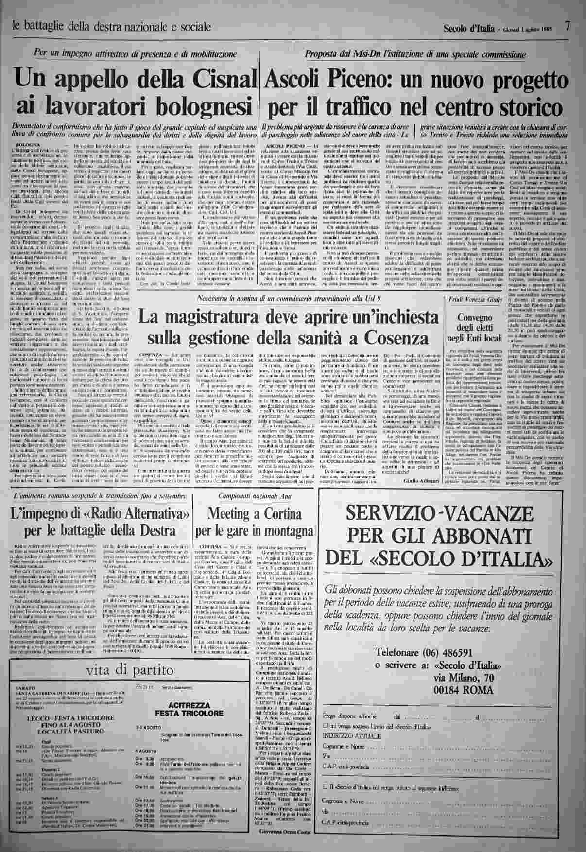 giovedì 1 agosto 1985