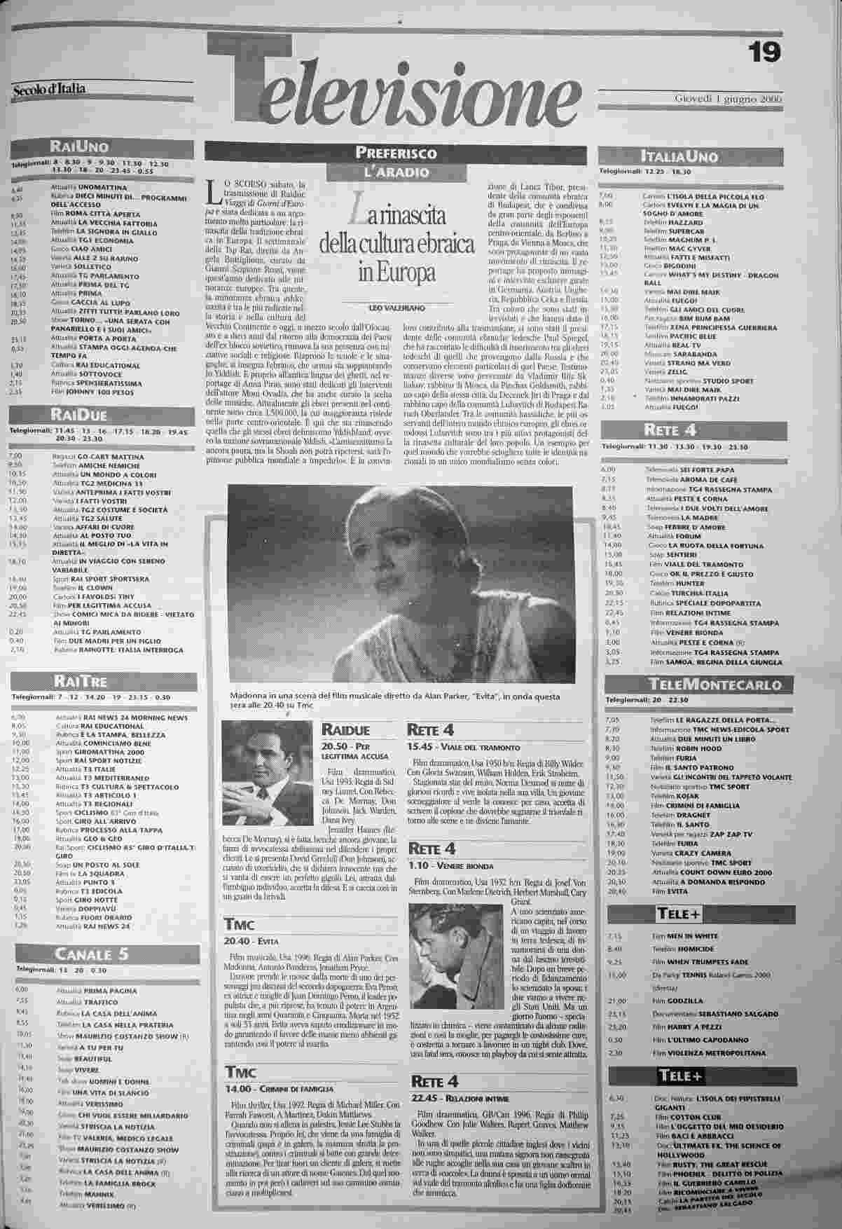 giovedì 1 giugno 2000