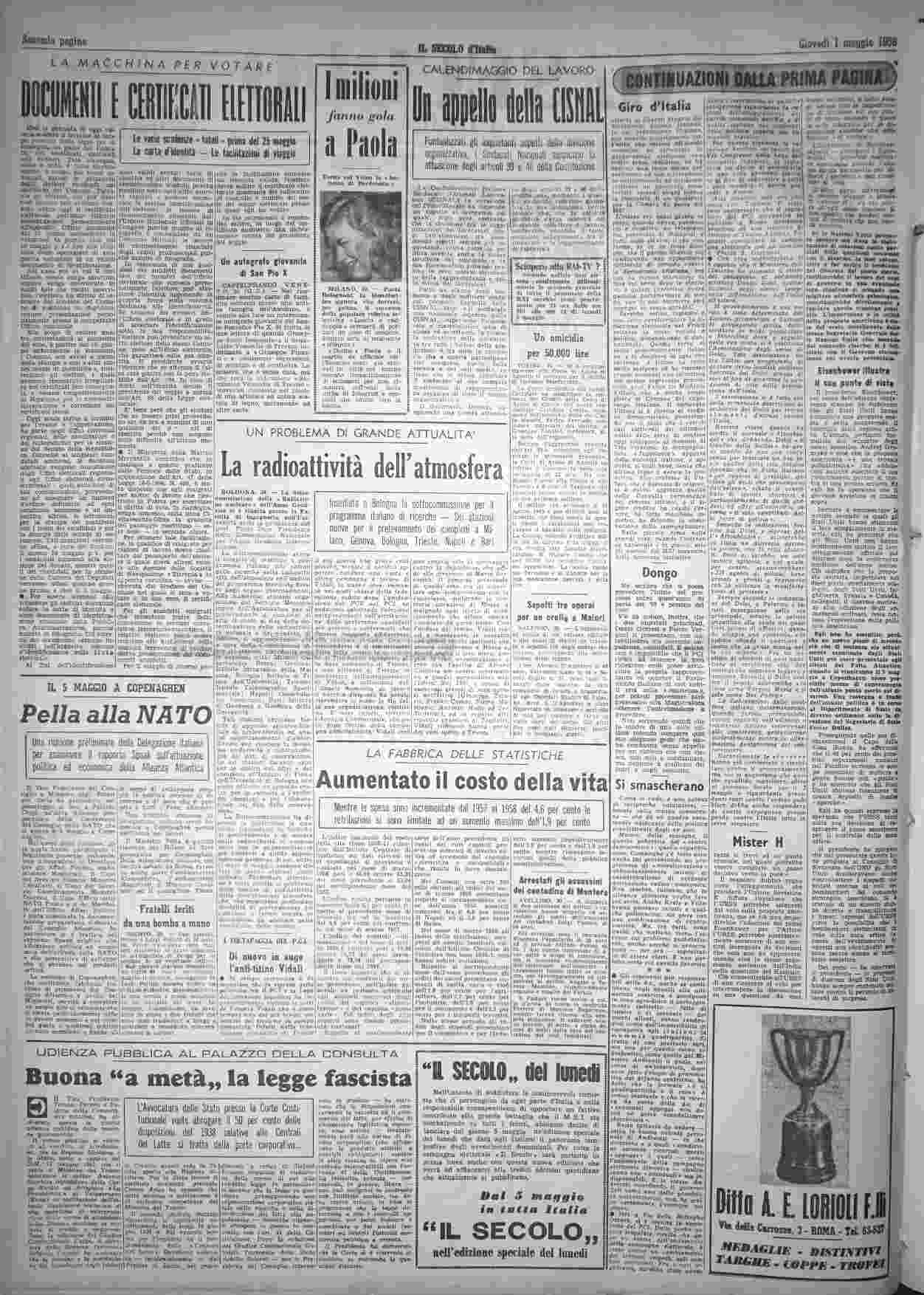 giovedì 1 maggio 1958