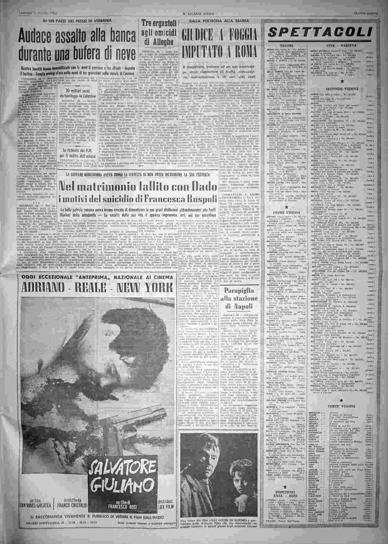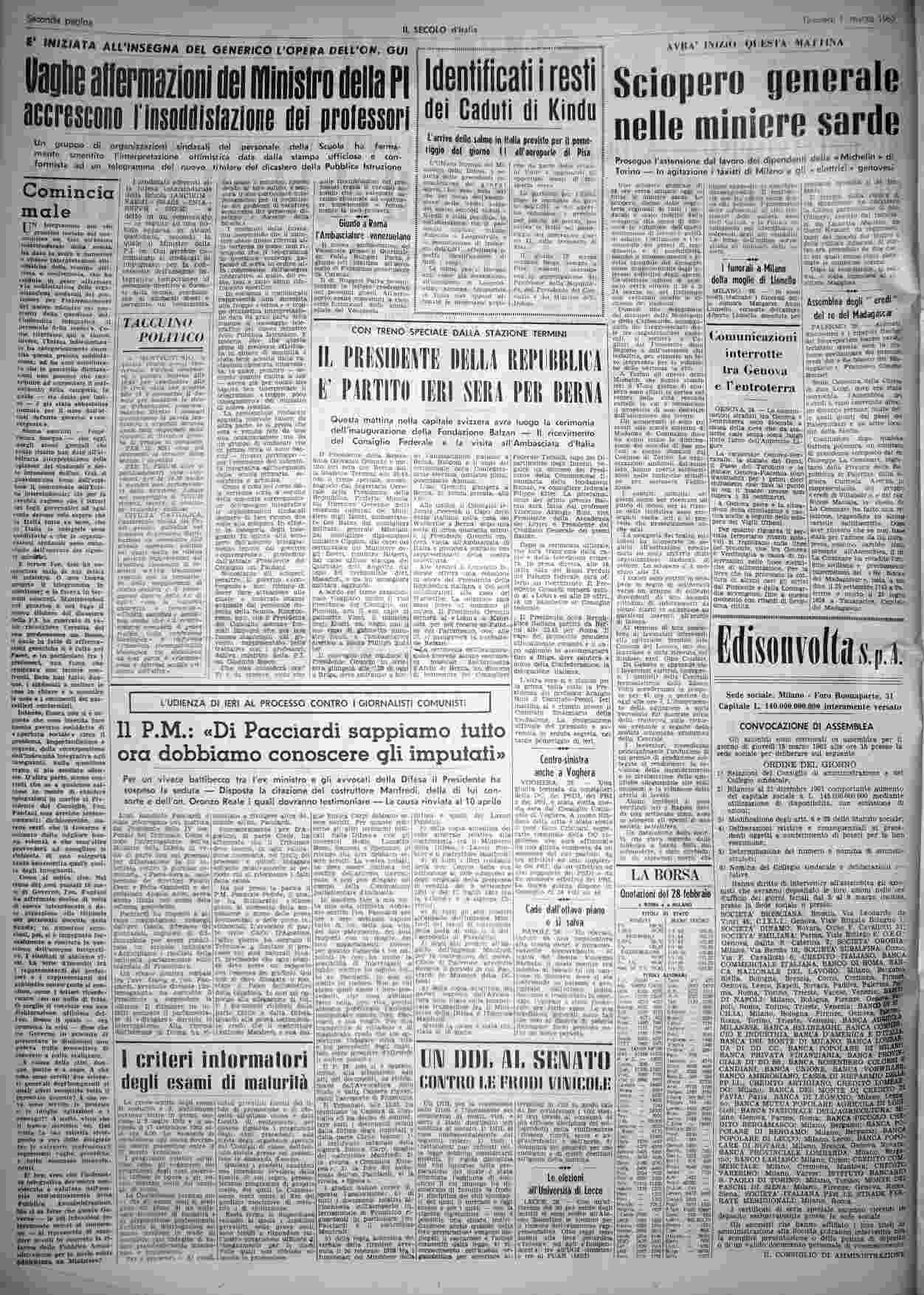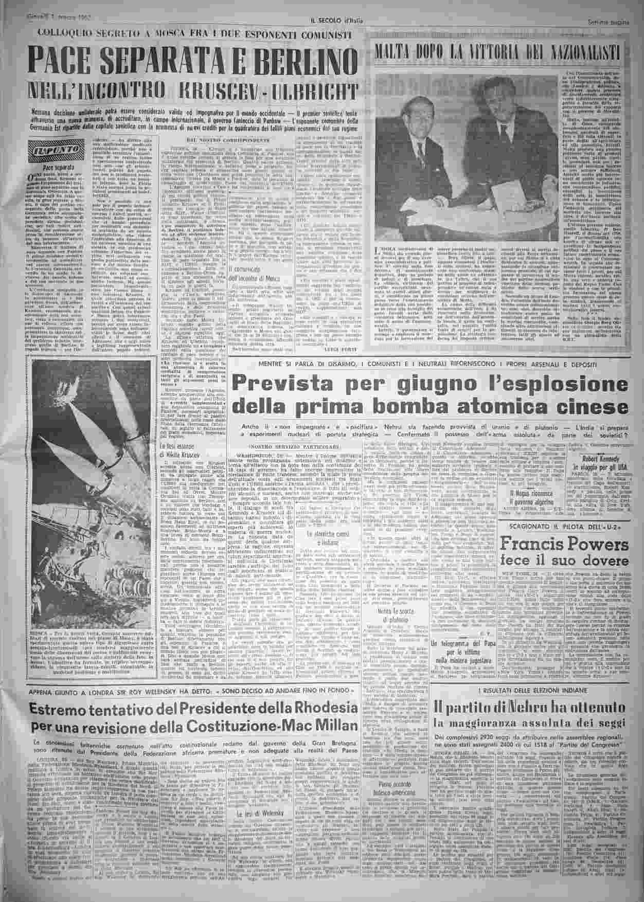 giovedì 1 marzo 1962