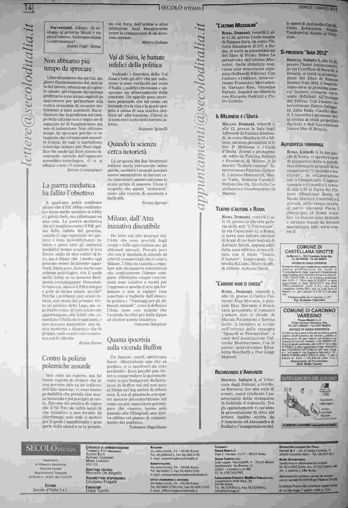 giovedì 1 marzo 2012