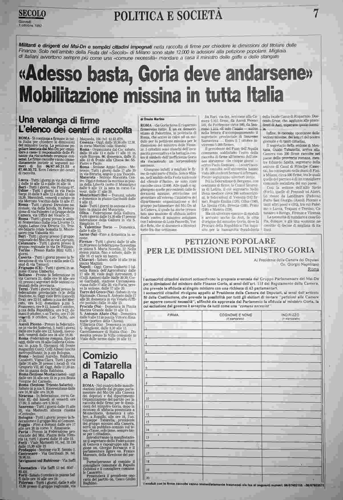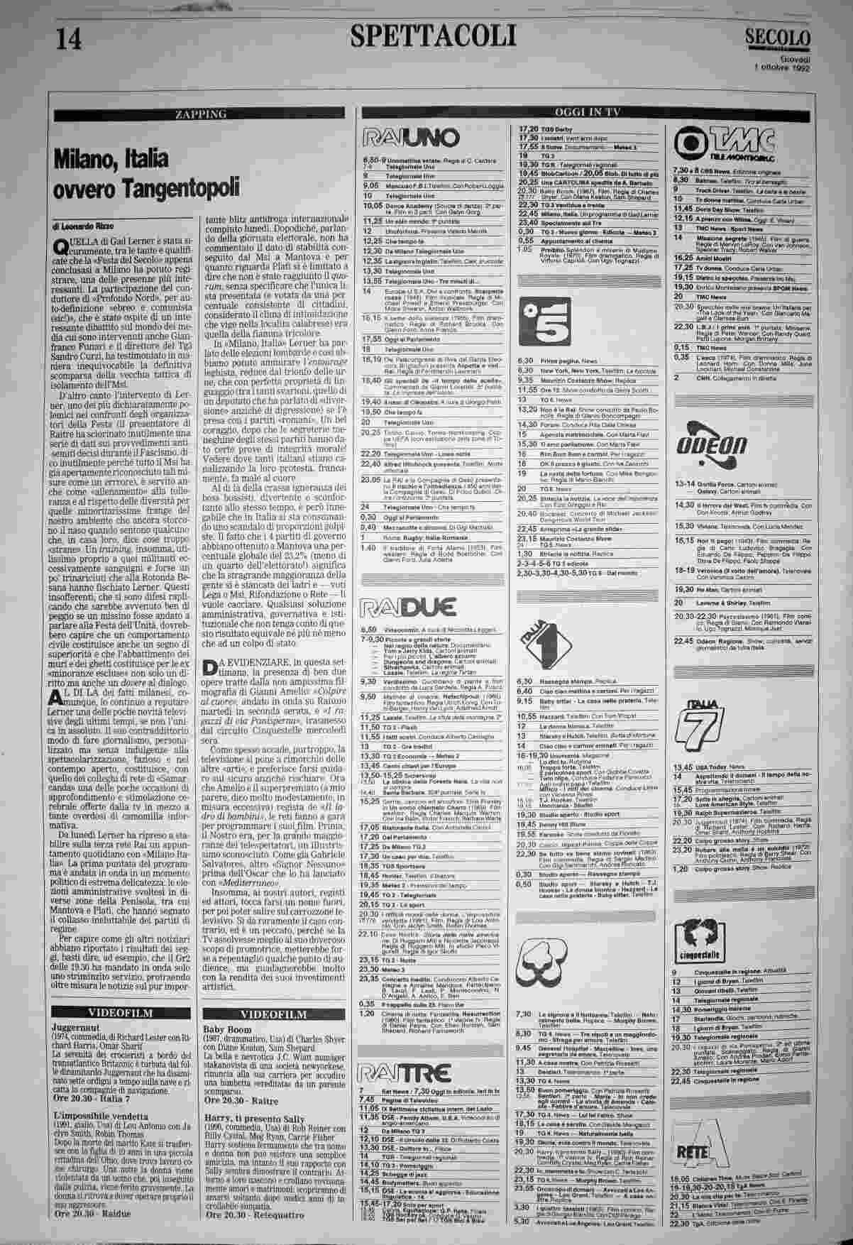 giovedì 1 ottobre 1992