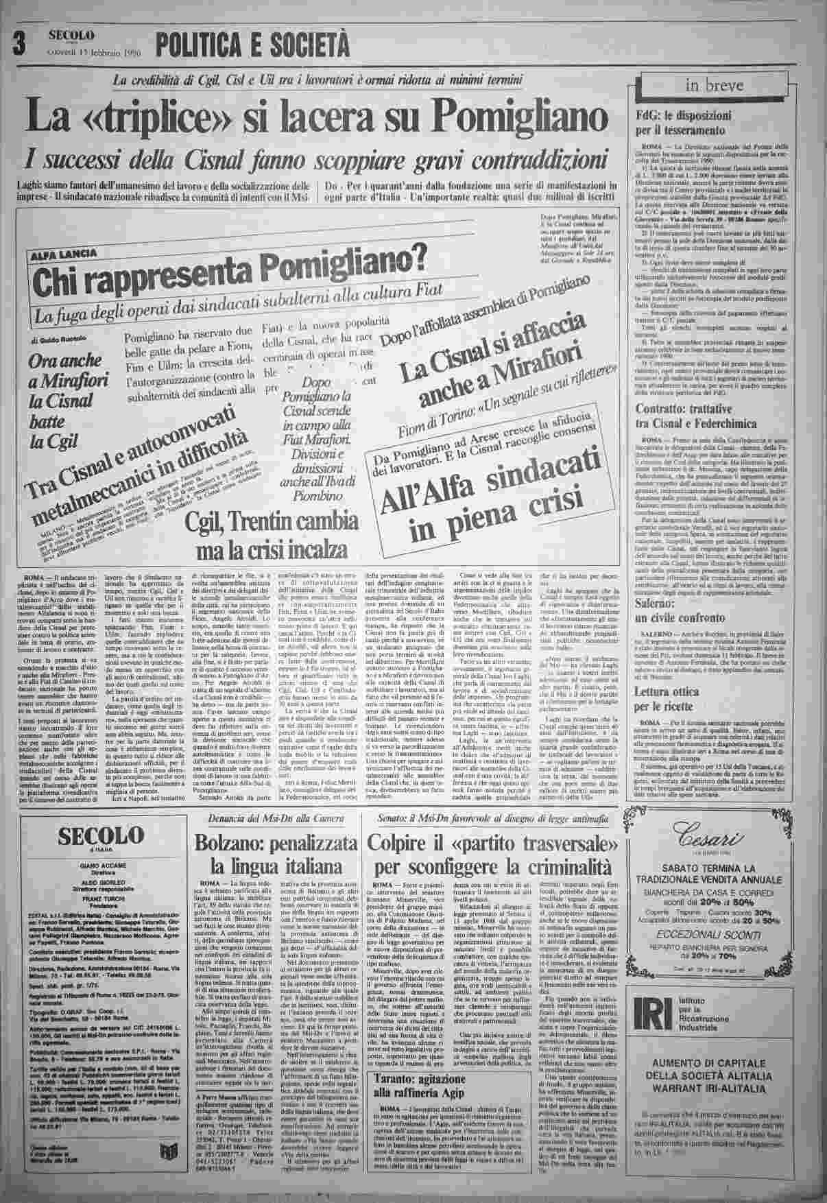 giovedì 15 febbraio 1990