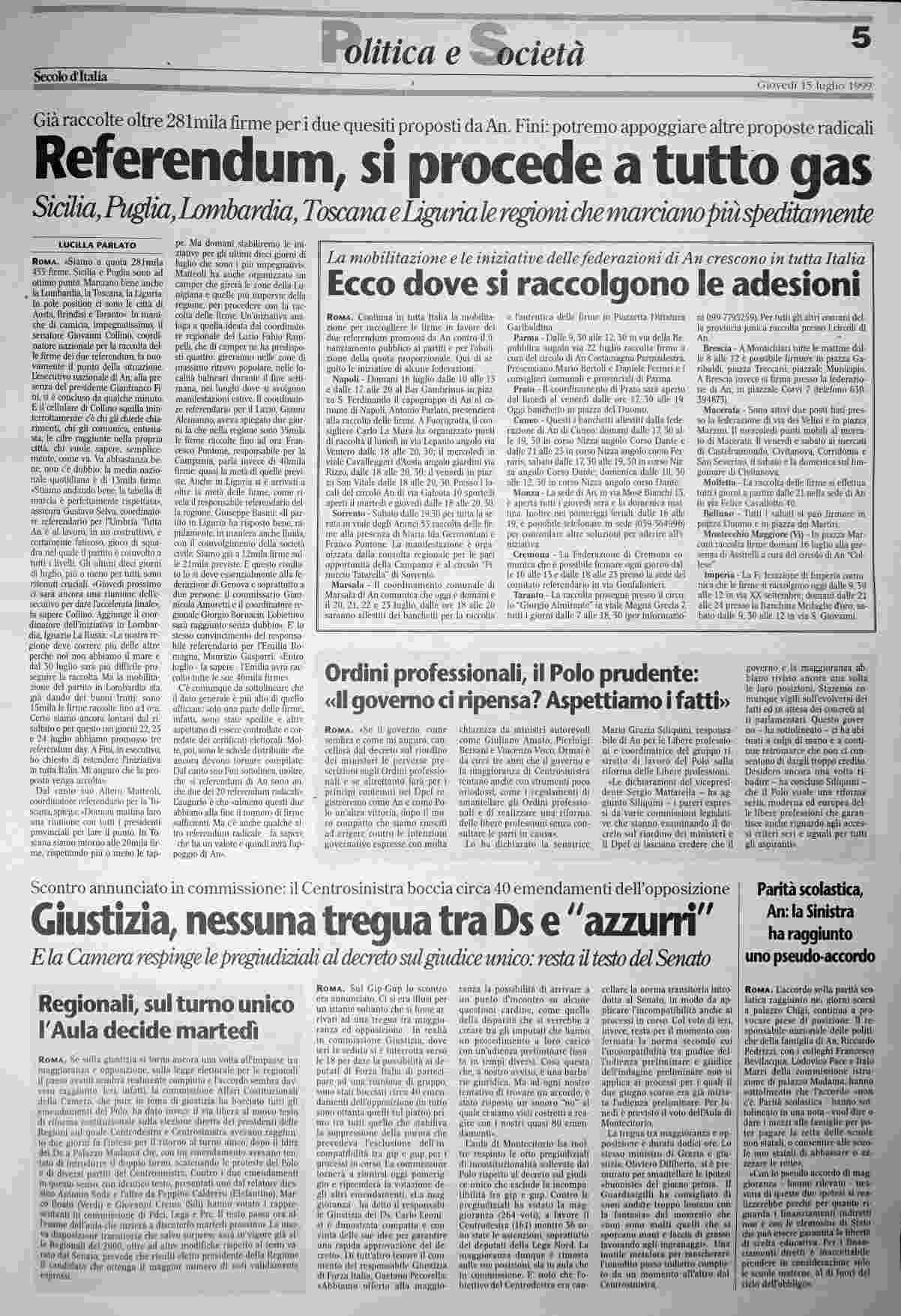 giovedì 15 luglio 1999