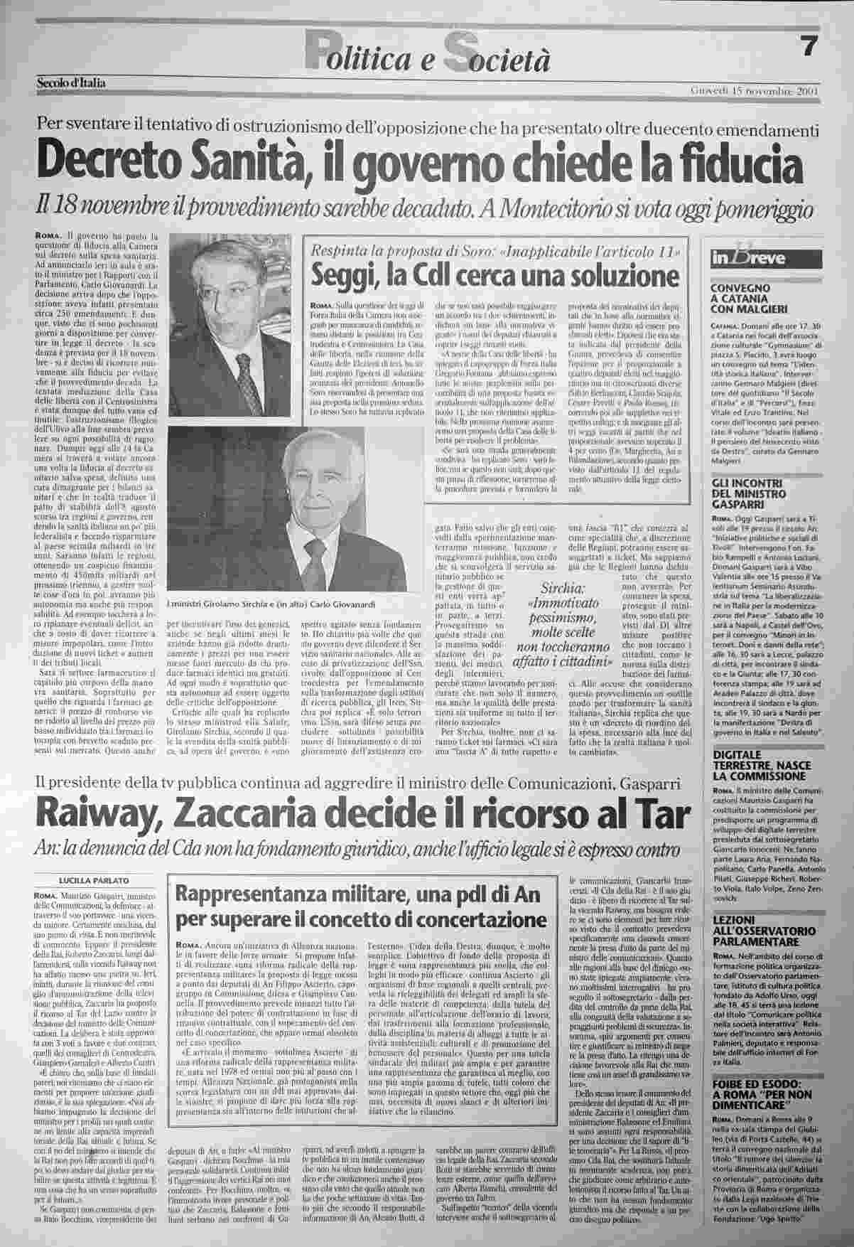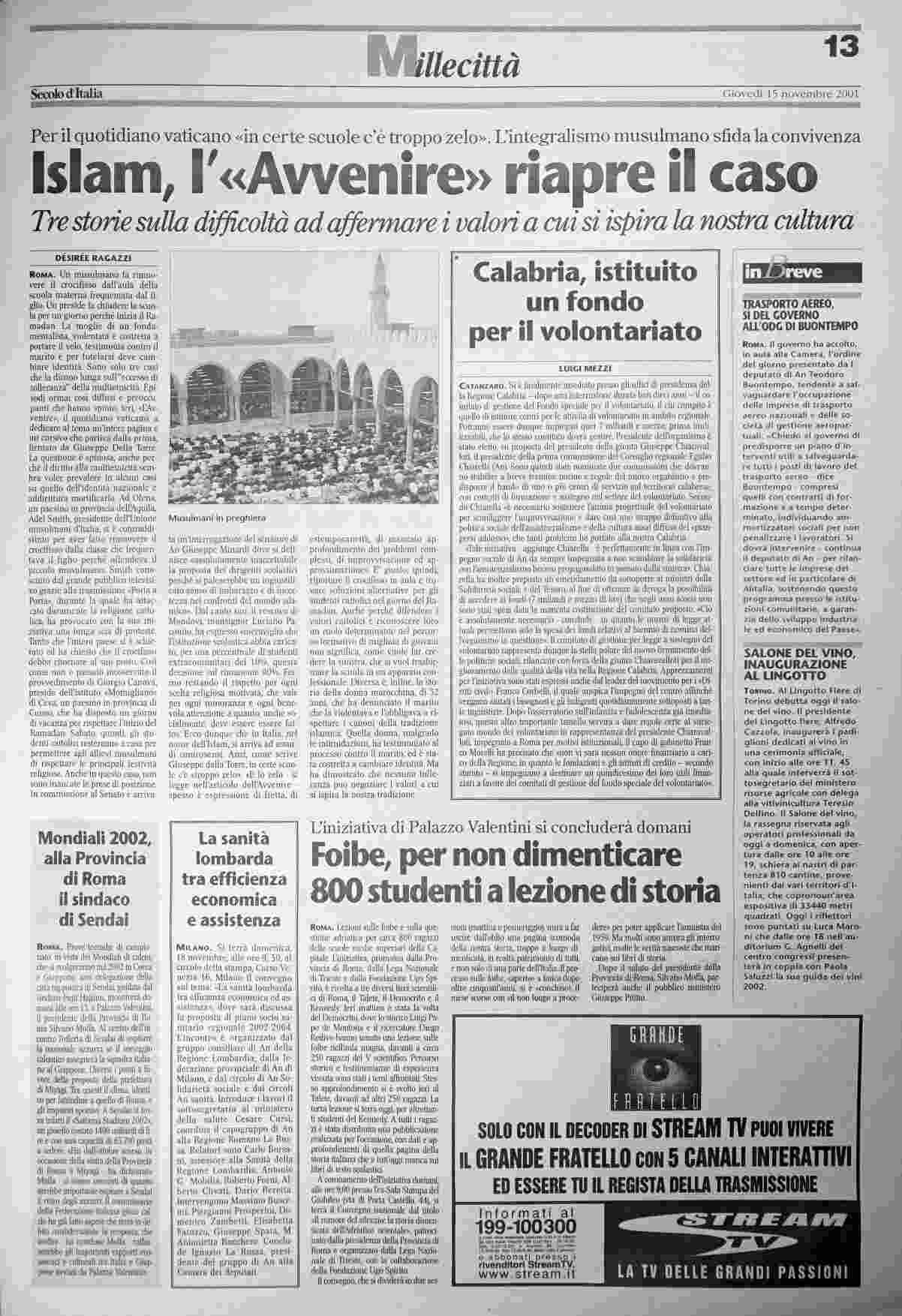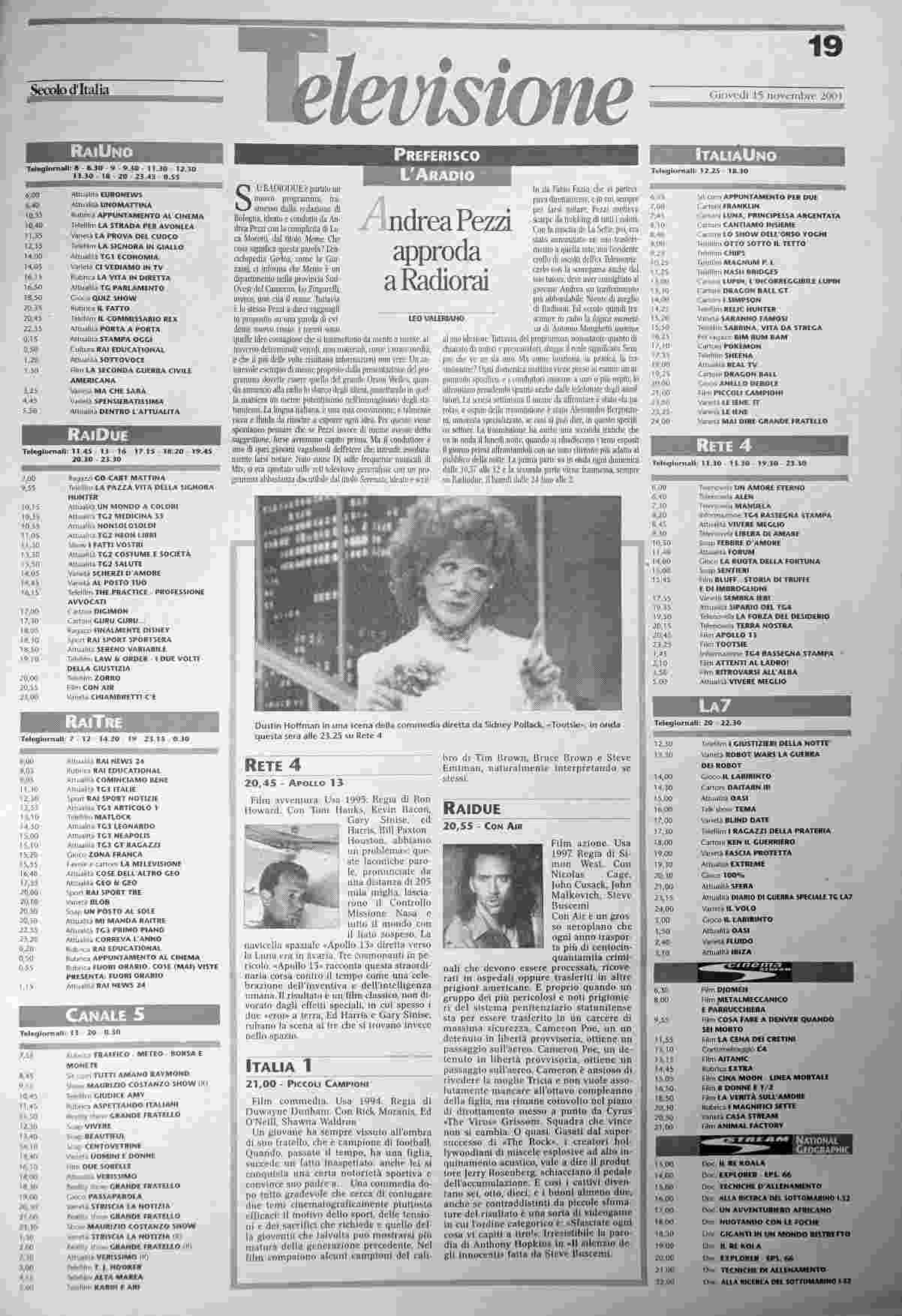 giovedì 15 novembre 2001