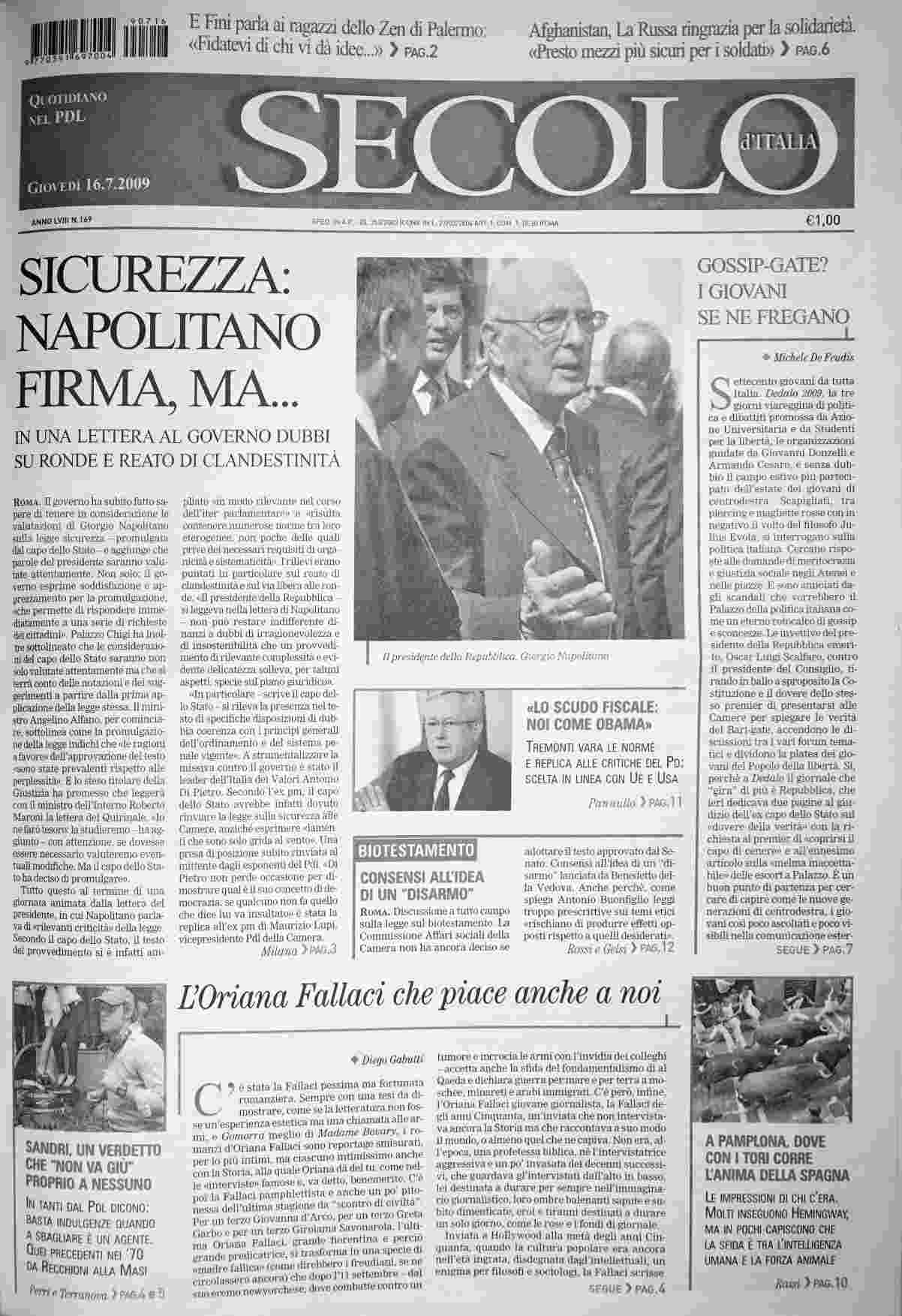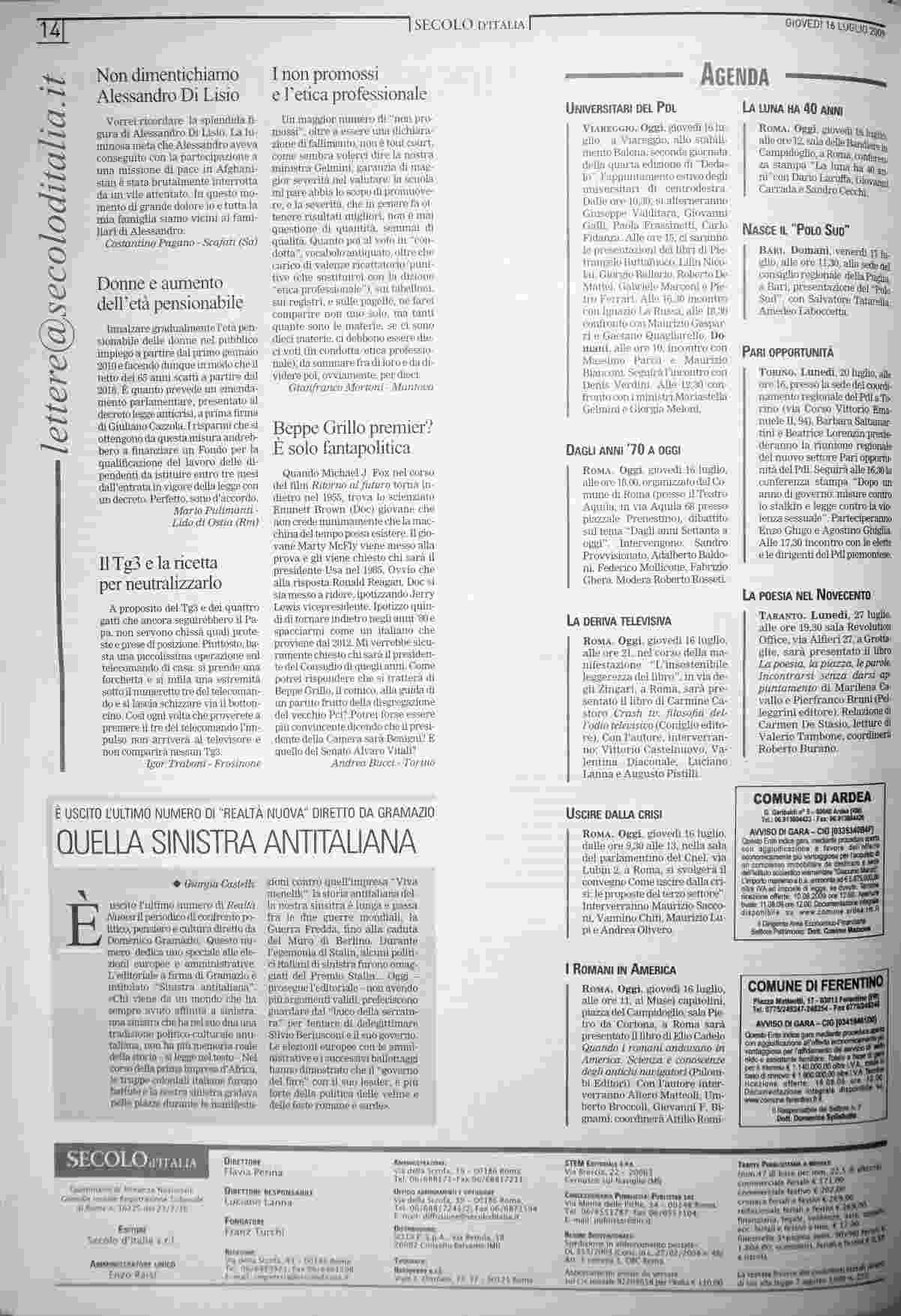 giovedì 16 luglio 2009