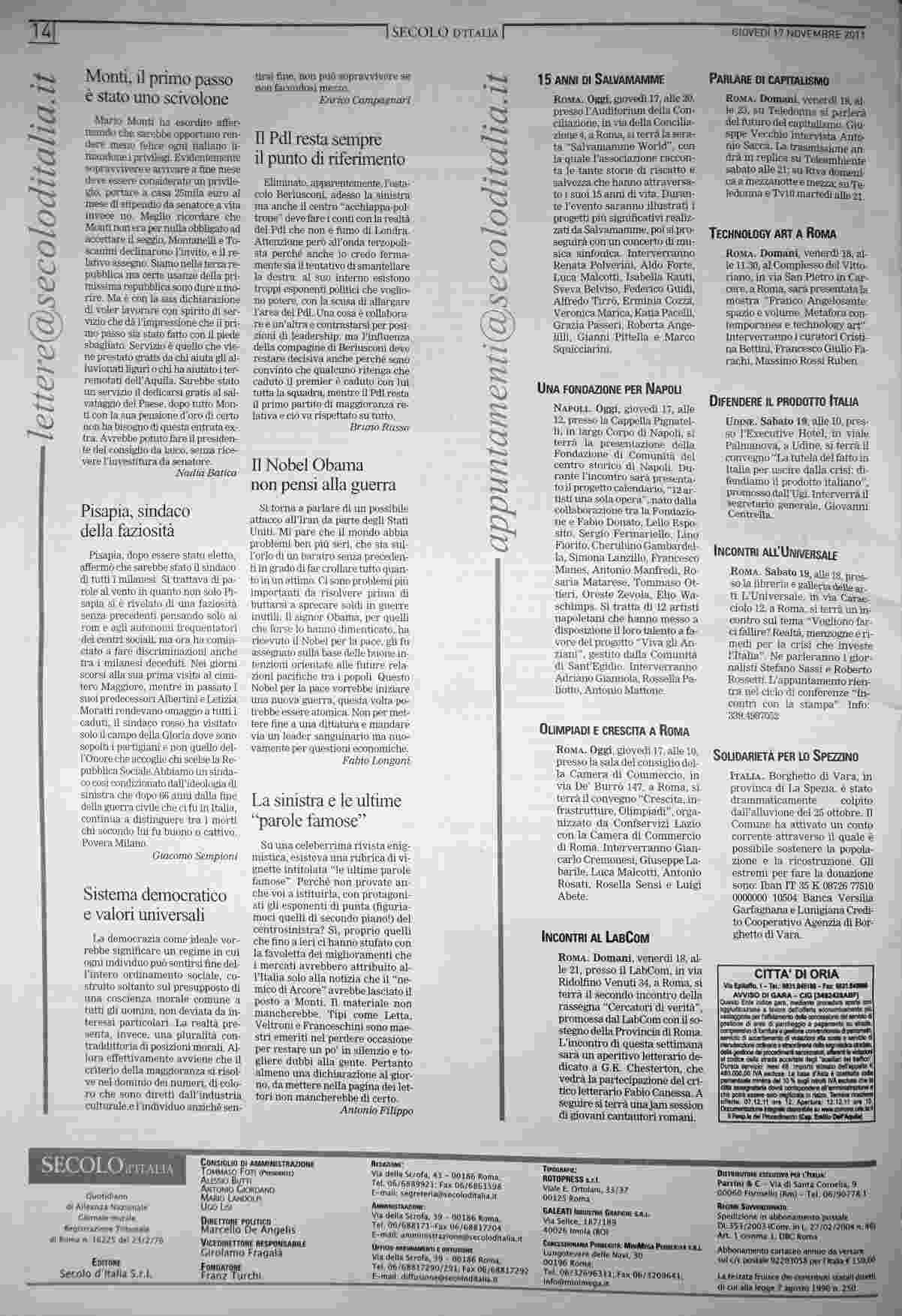giovedì 17 novembre 2011