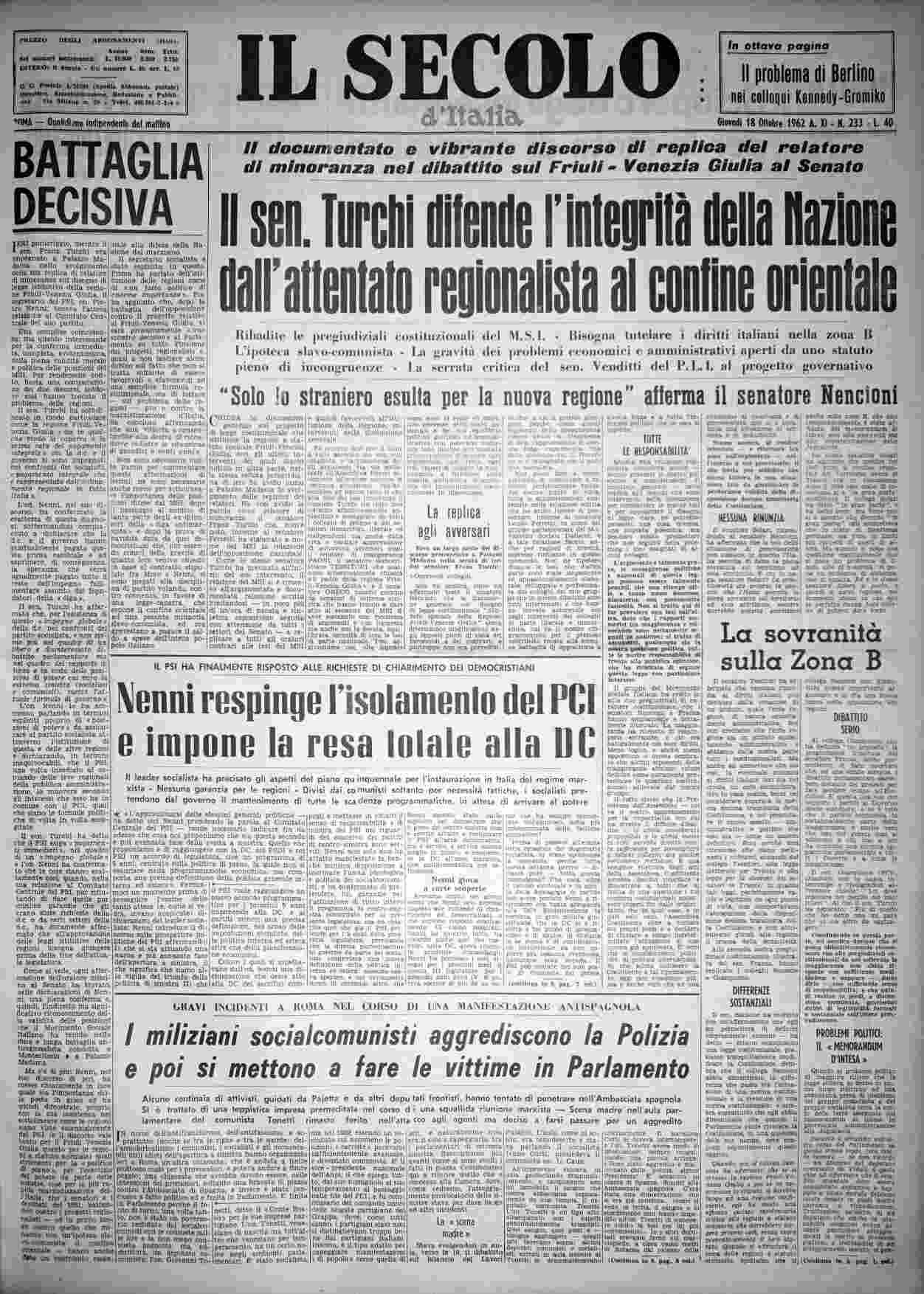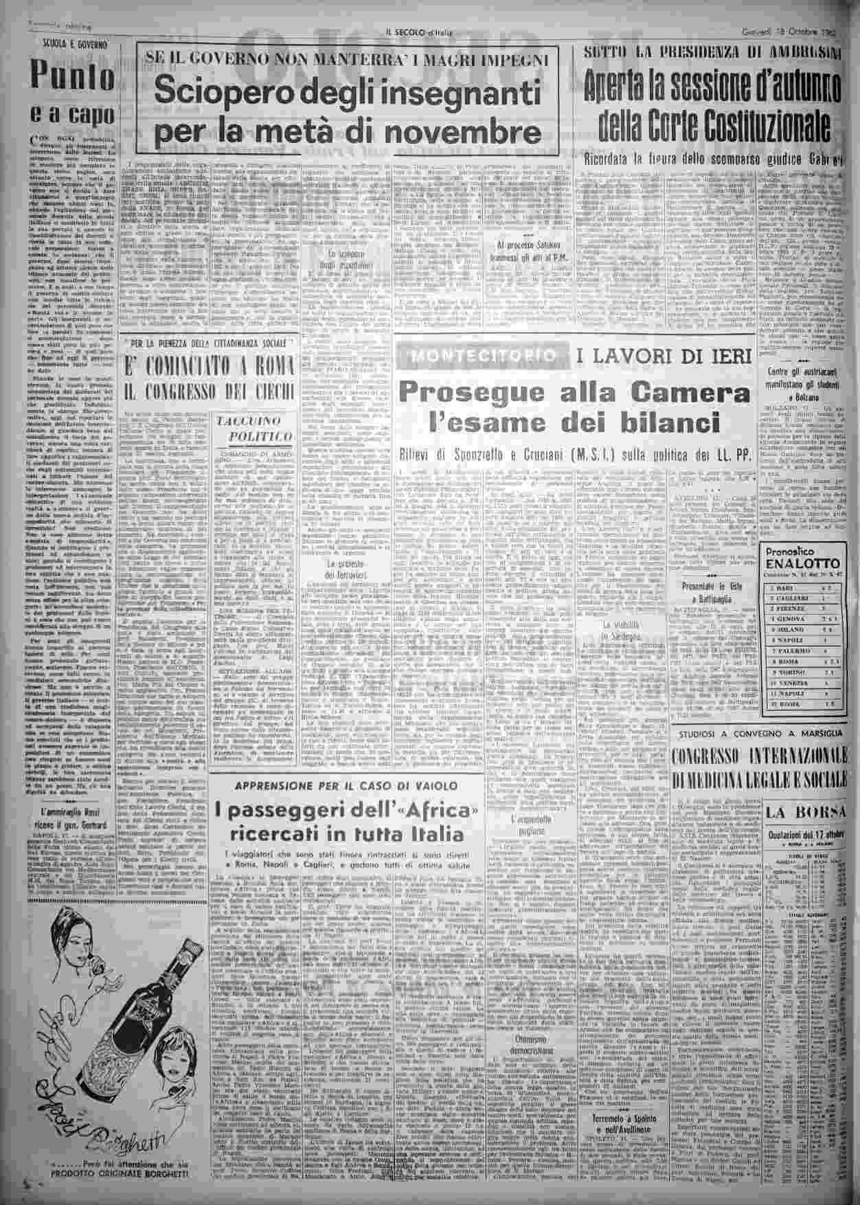 giovedì 18 ottobre 1962