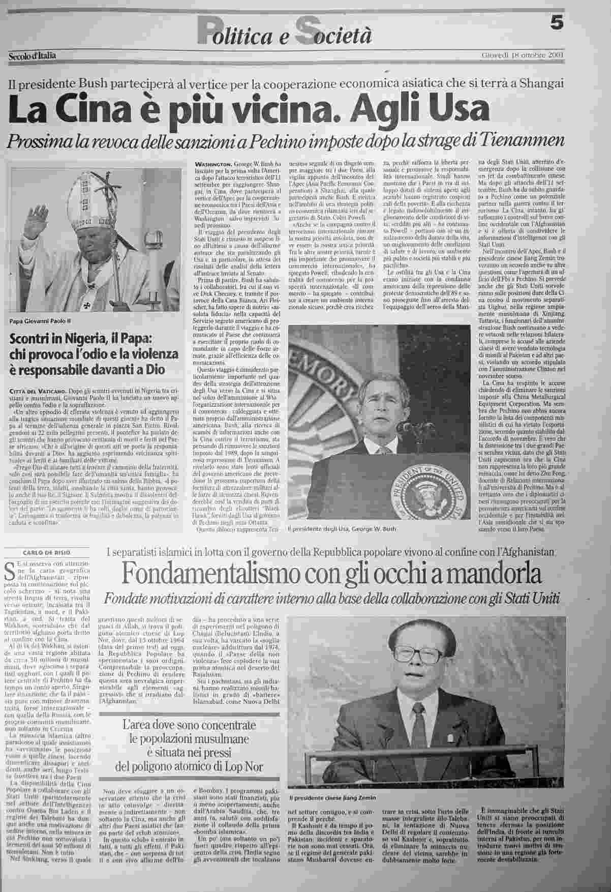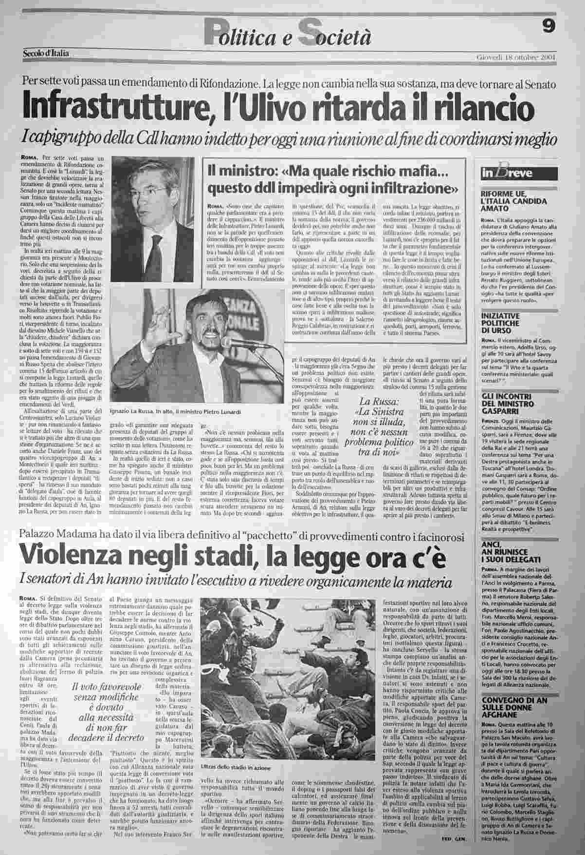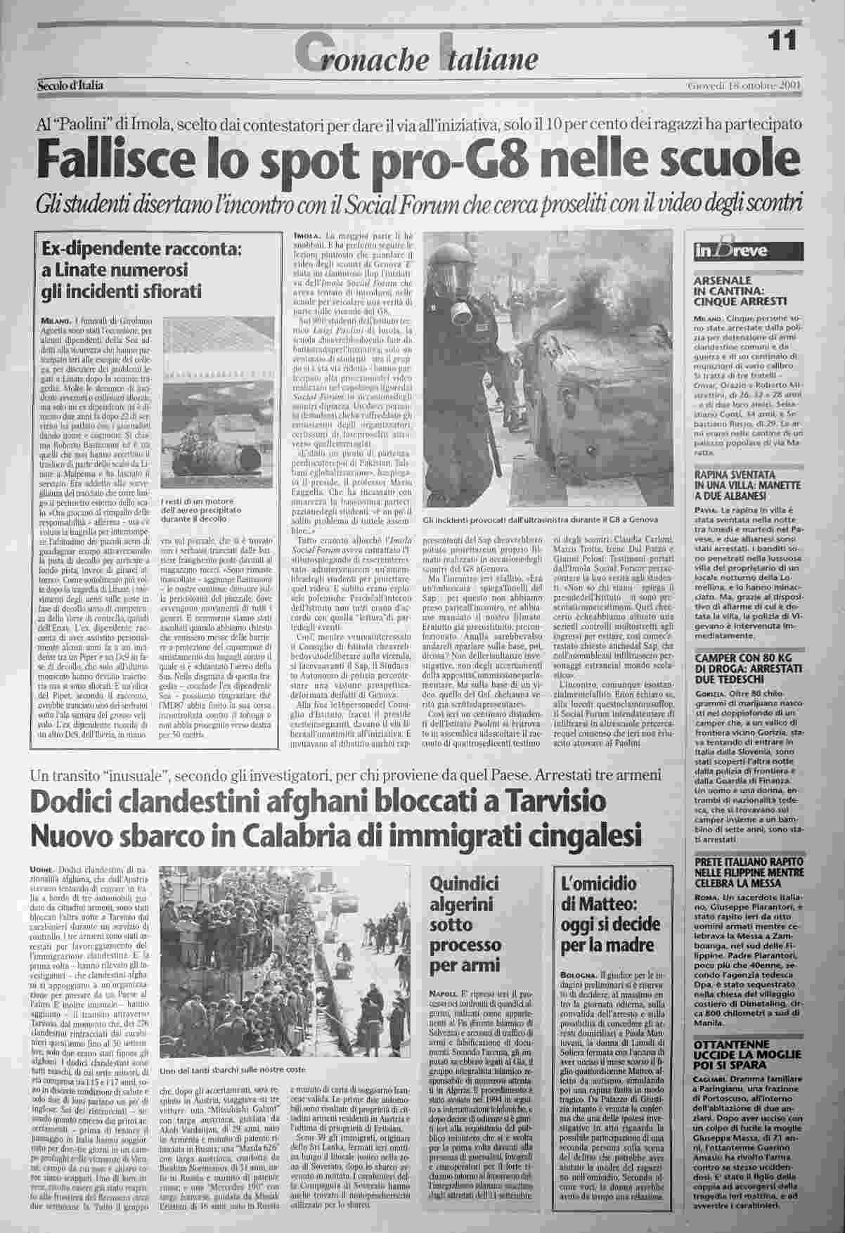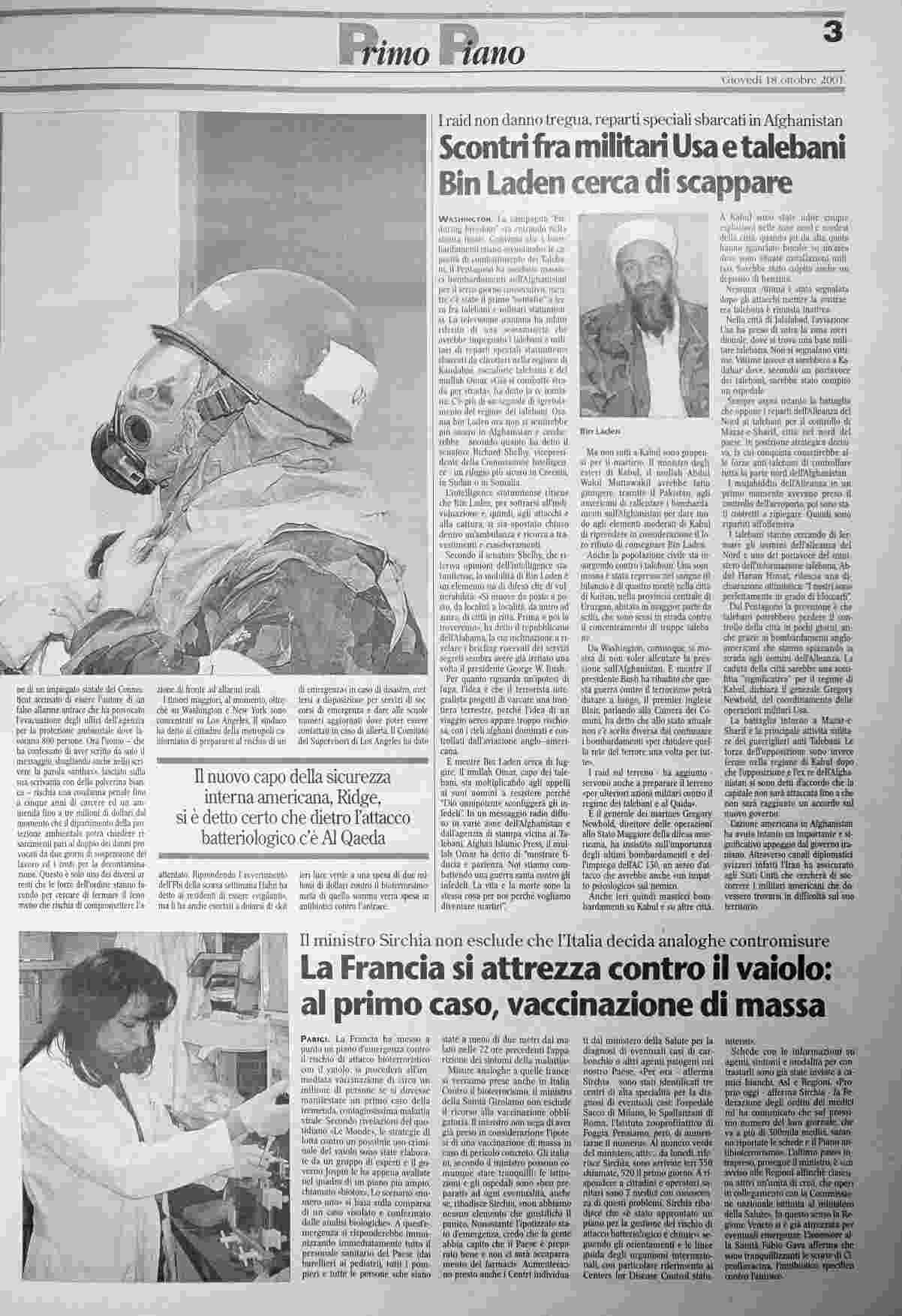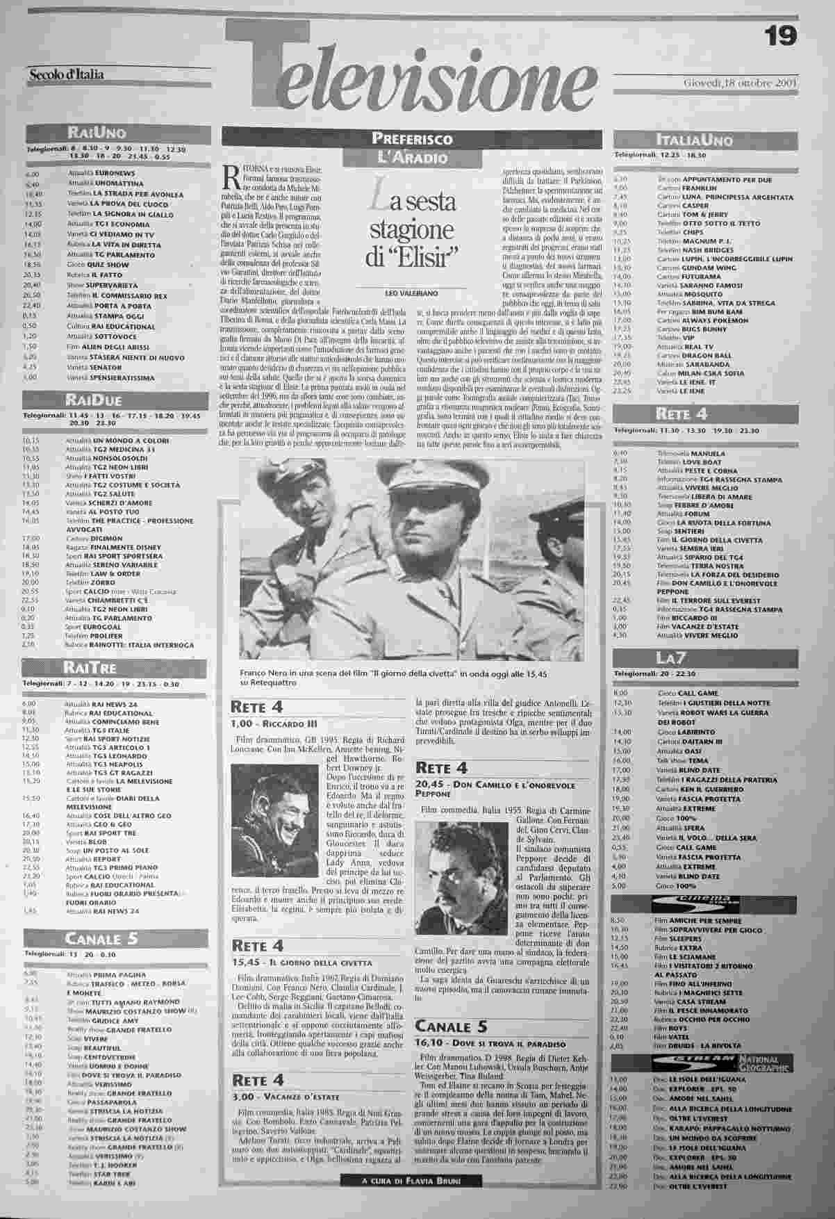 giovedì 18 ottobre 2001