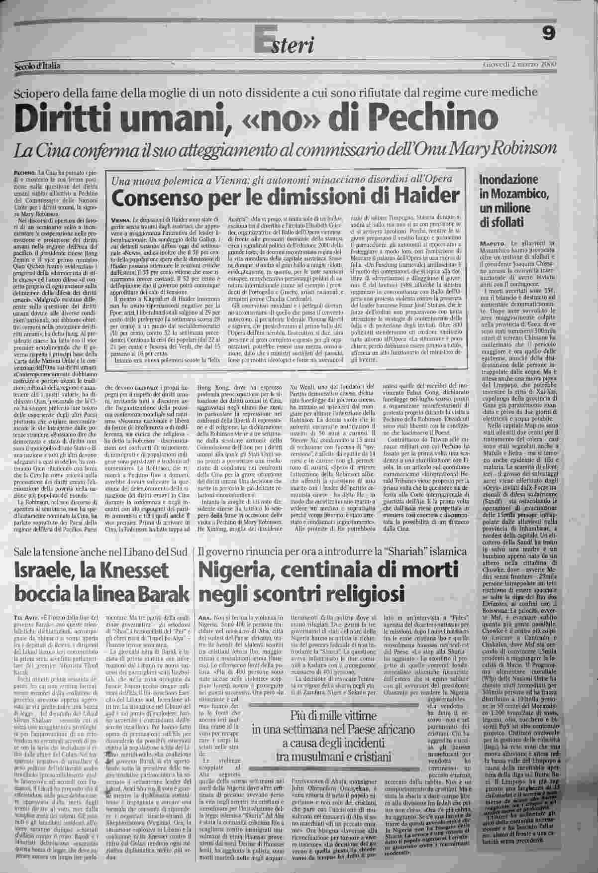giovedì 2 marzo 2000