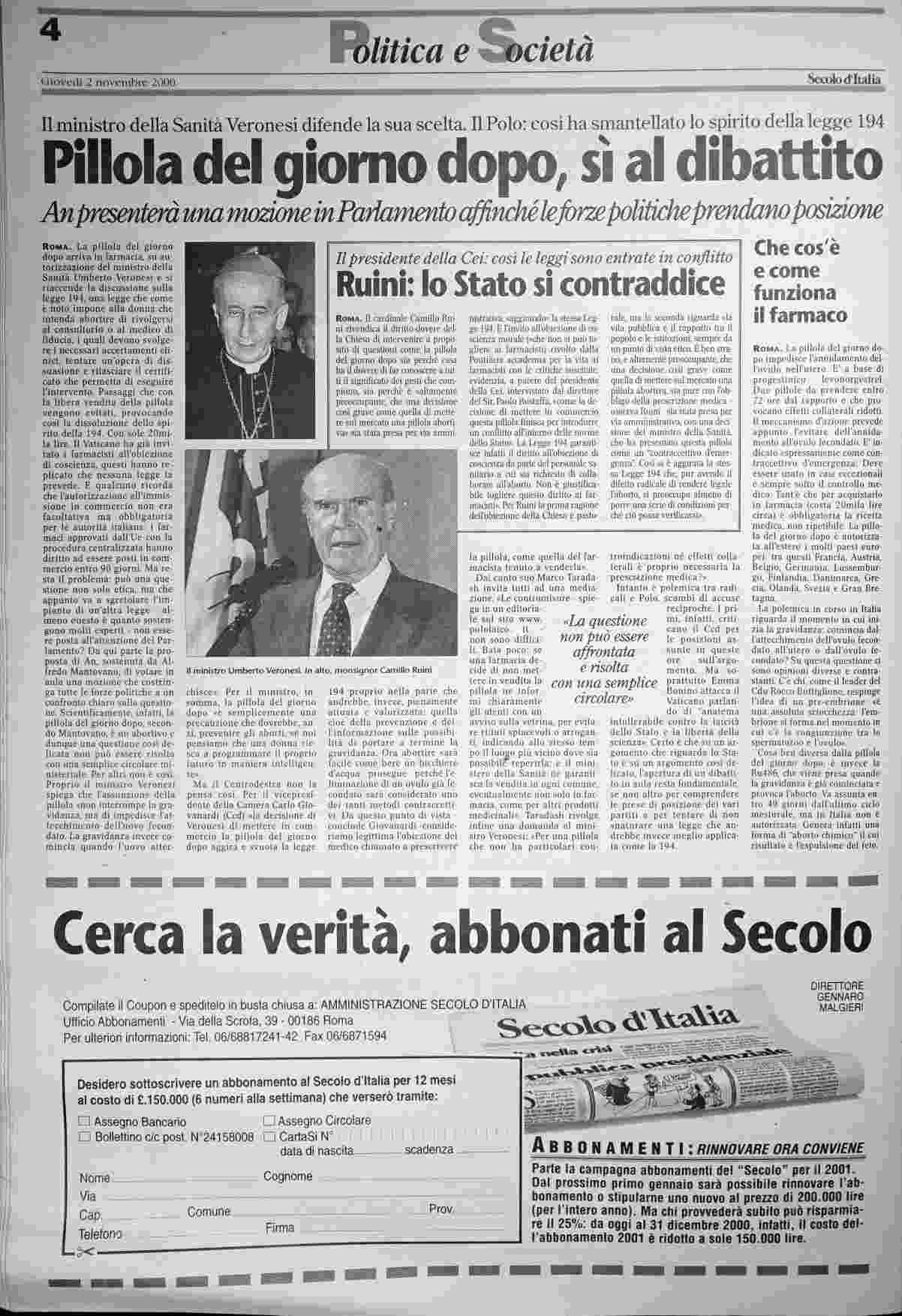 giovedì 2 novembre 2000
