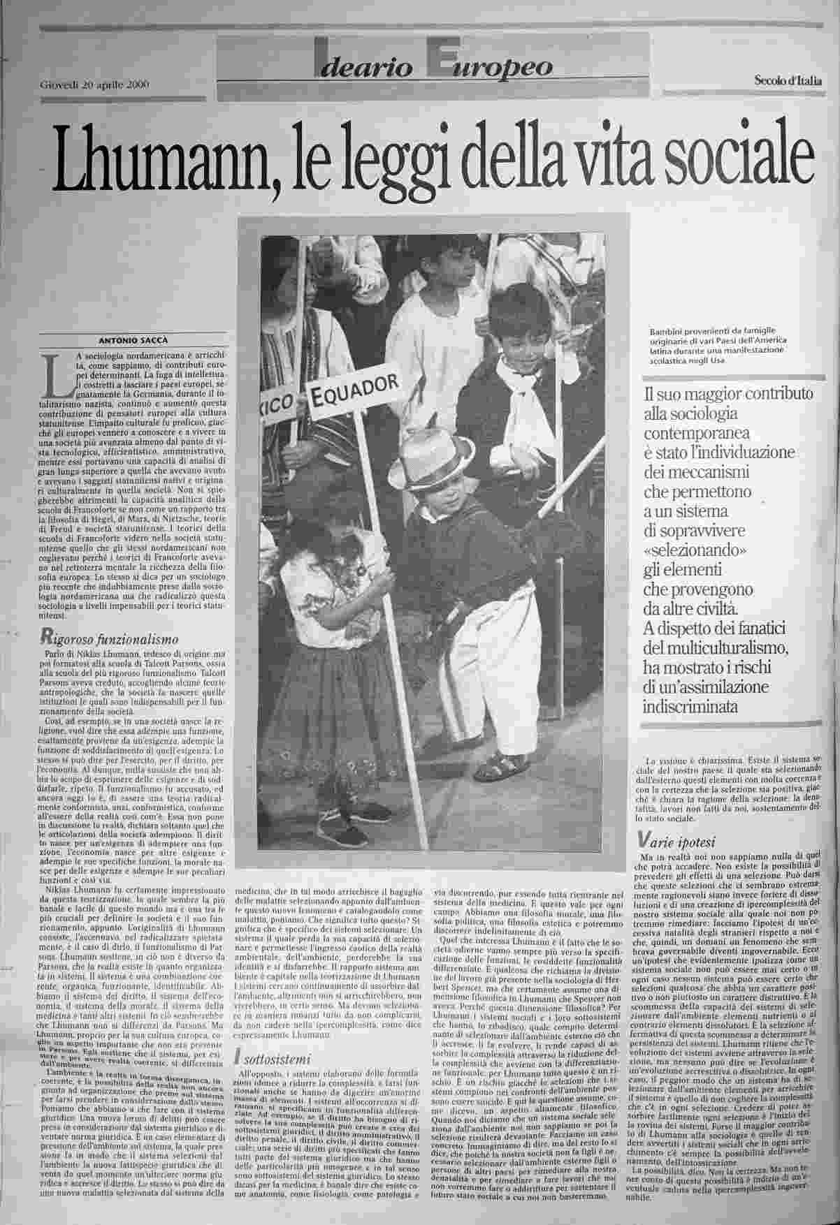 giovedì 20 aprile 2000