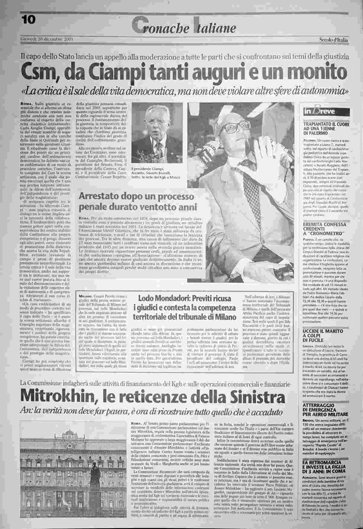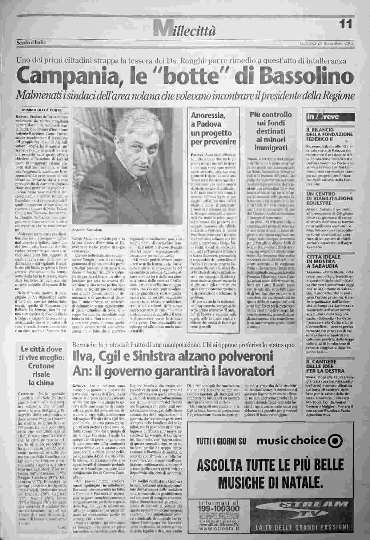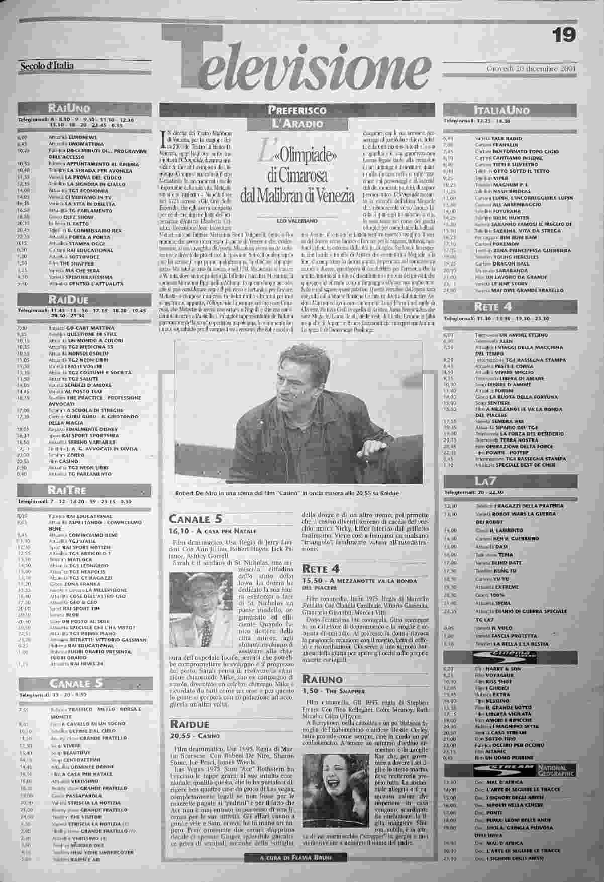 giovedì 20 dicembre 2001