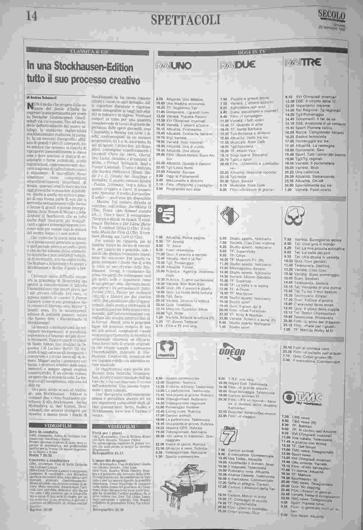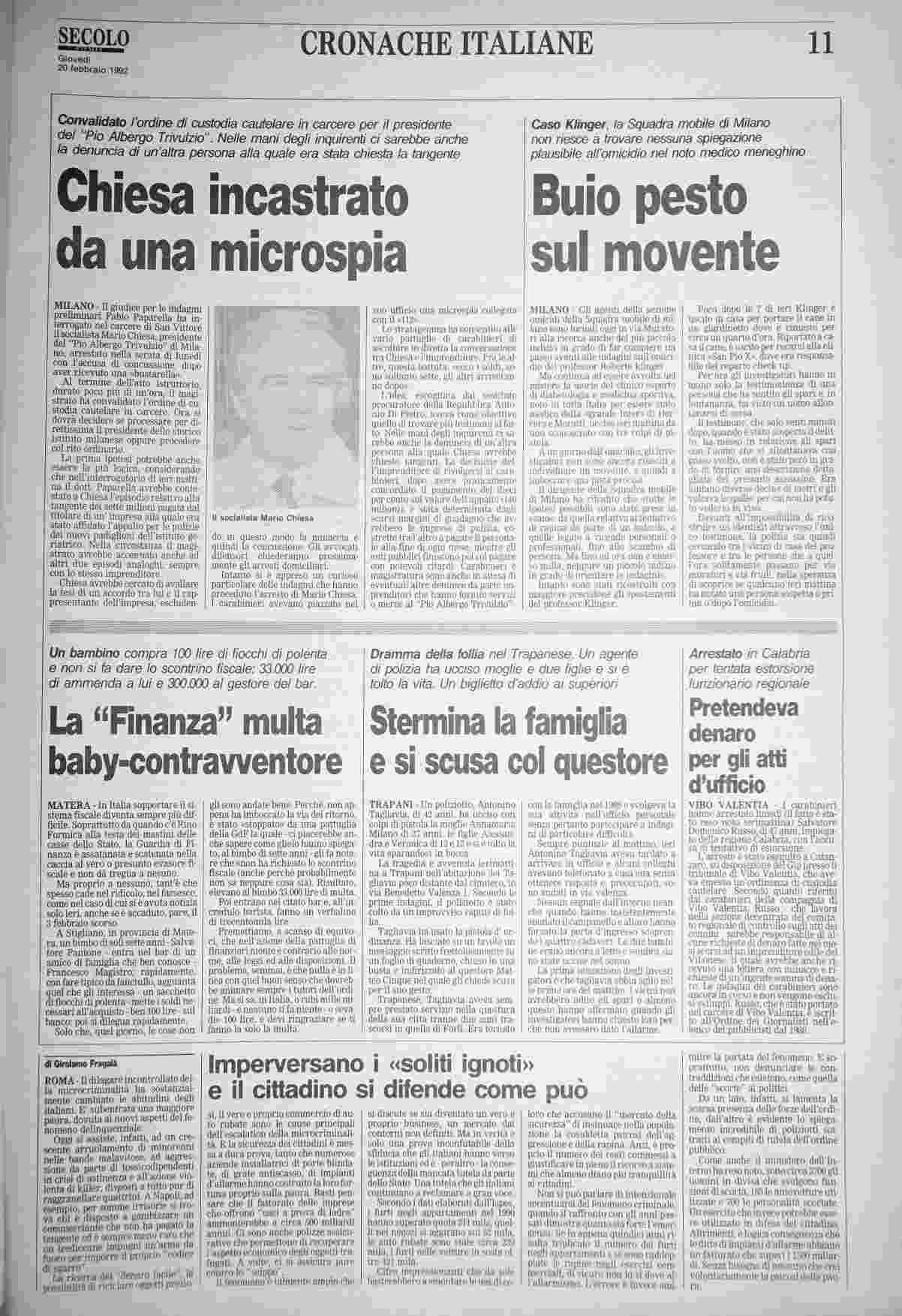 giovedì 20 febbraio 1992