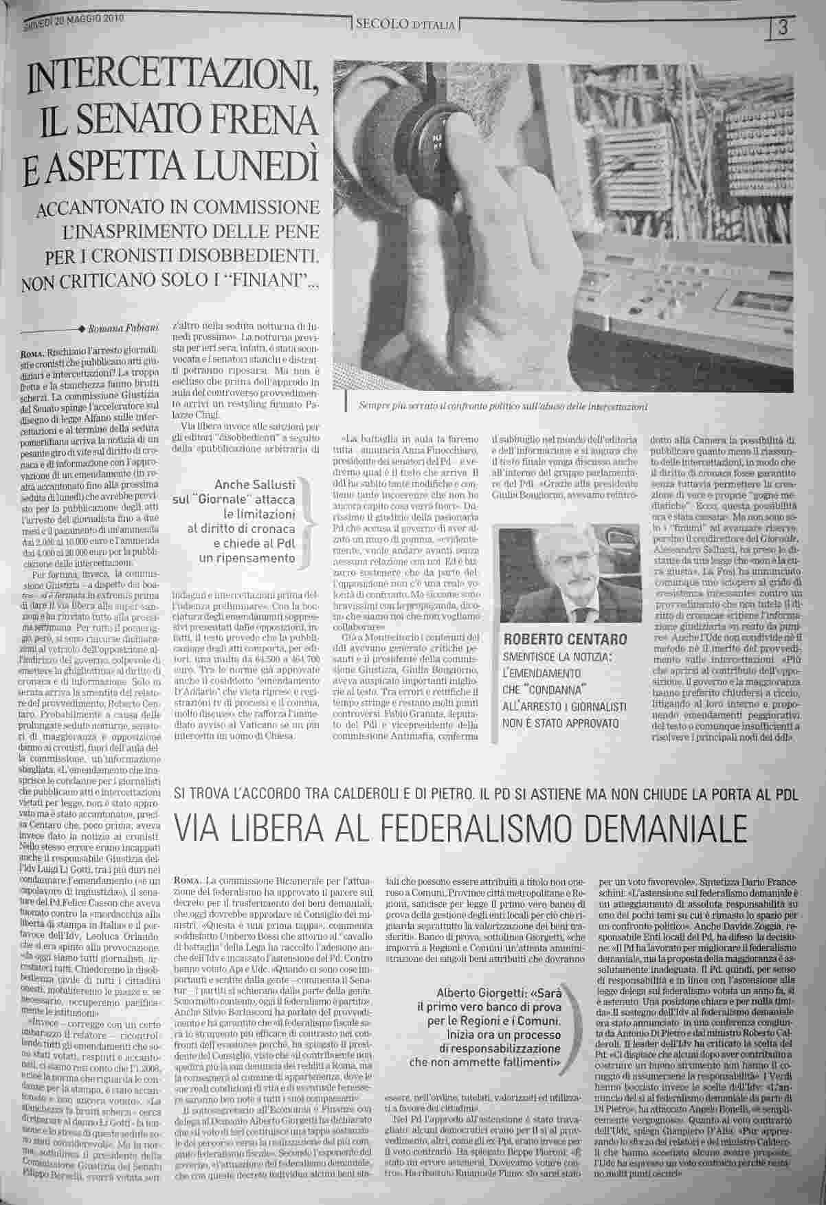 giovedì 20 maggio 2010