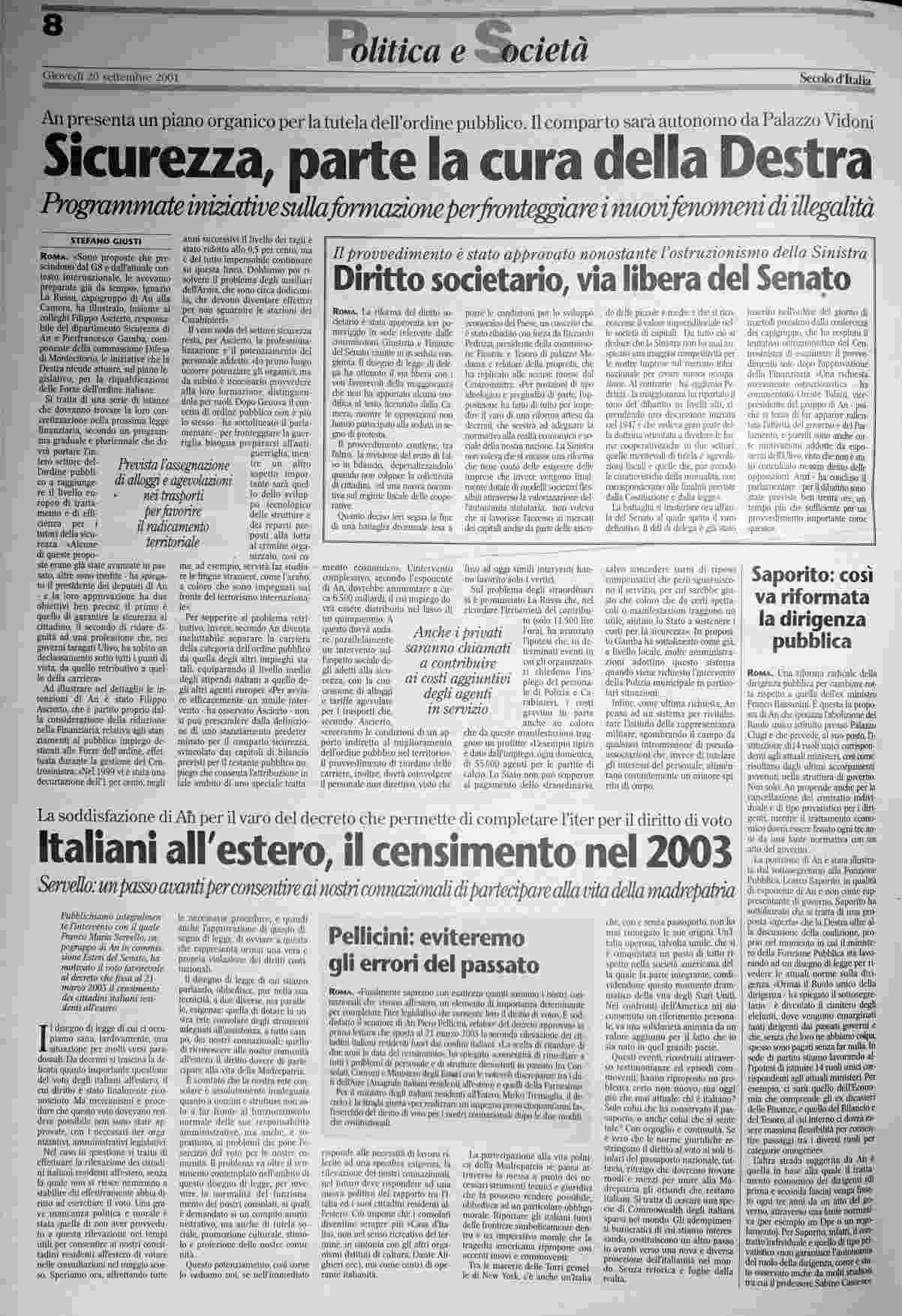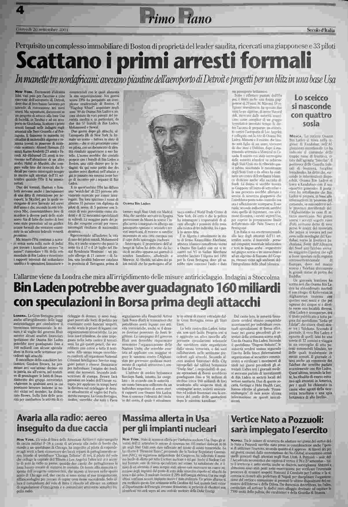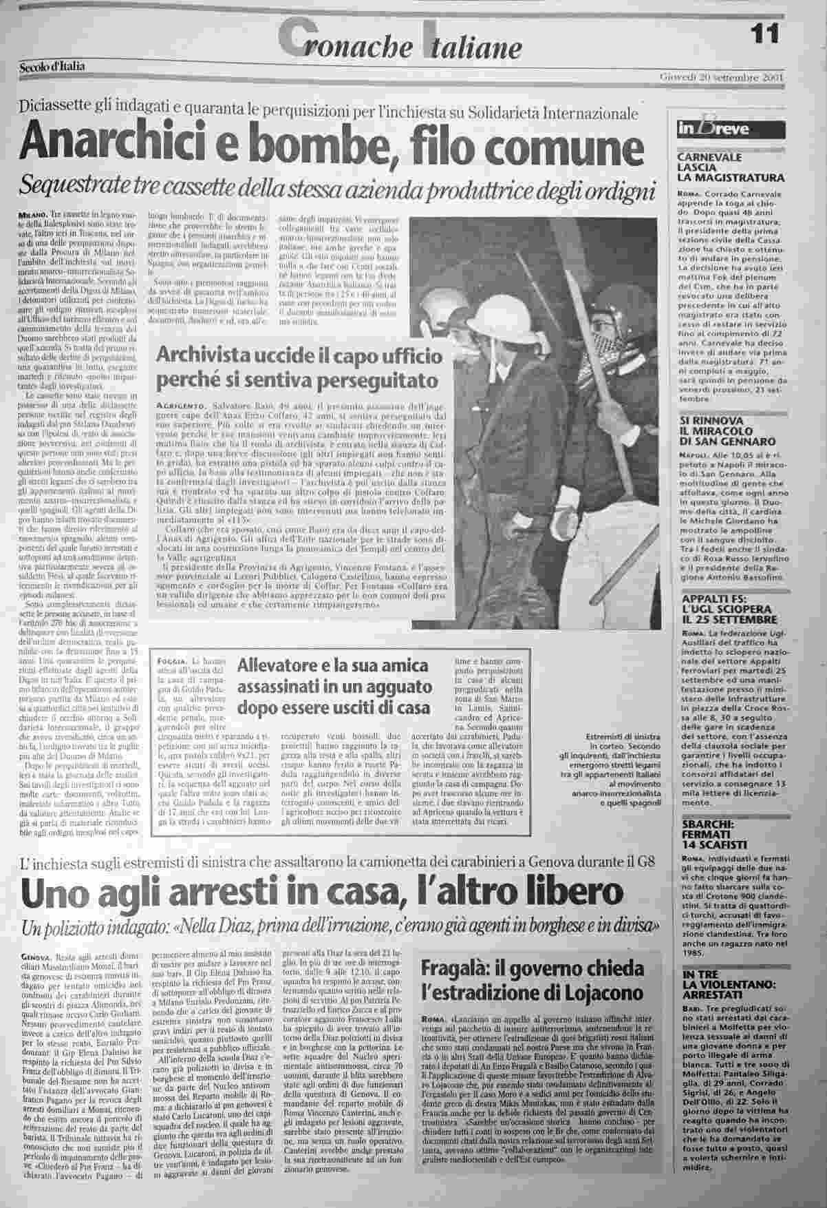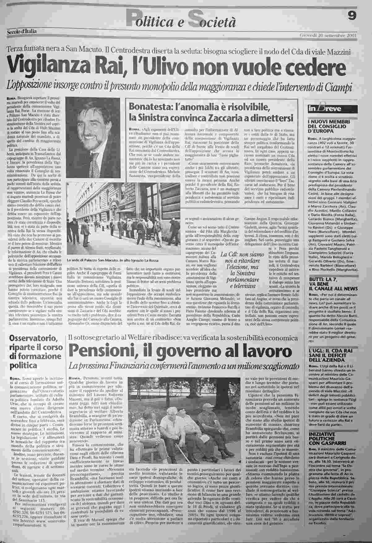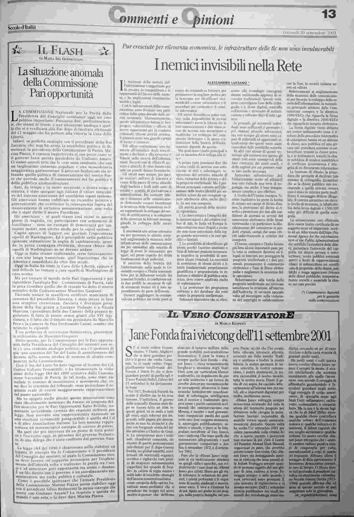 giovedì 20 settembre 2001