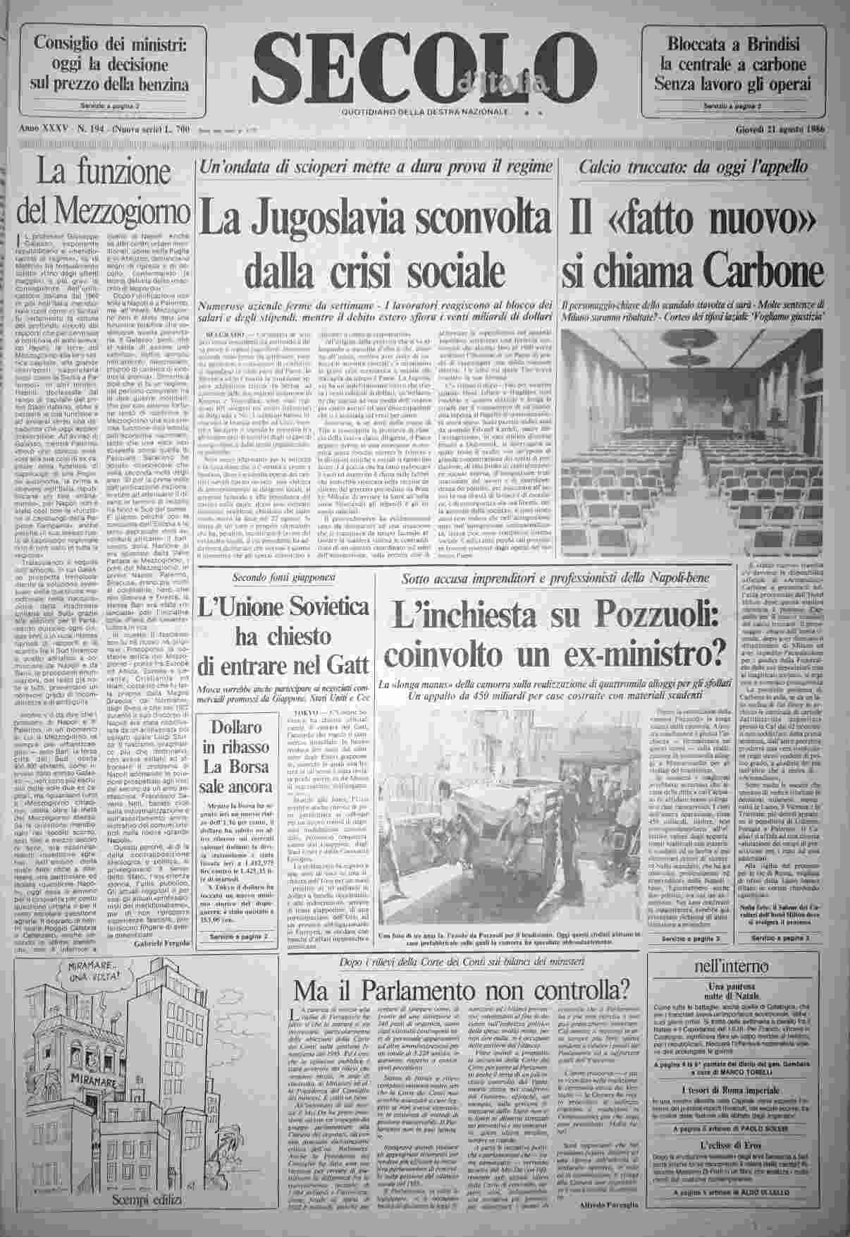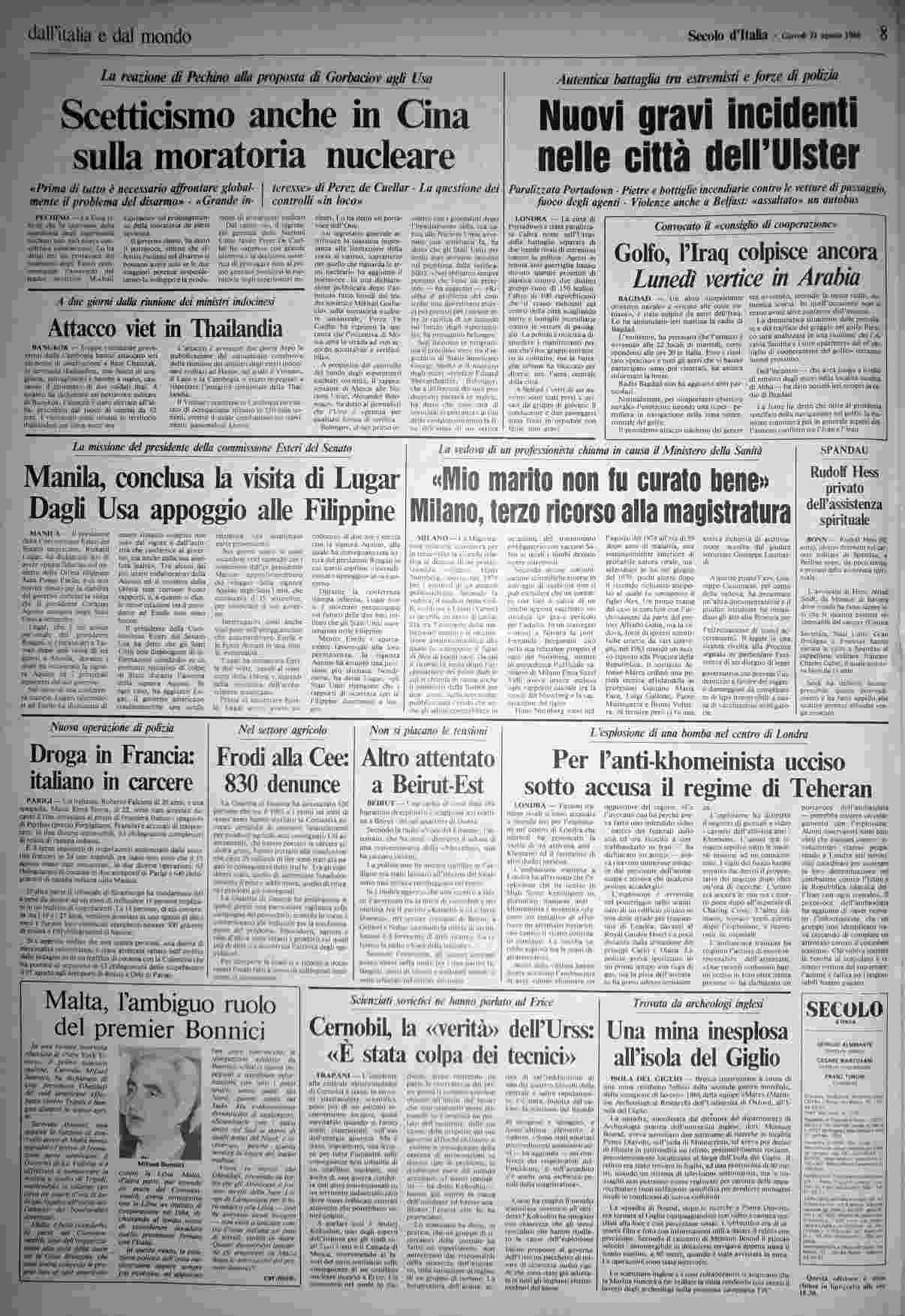 giovedì 21 agosto 1986