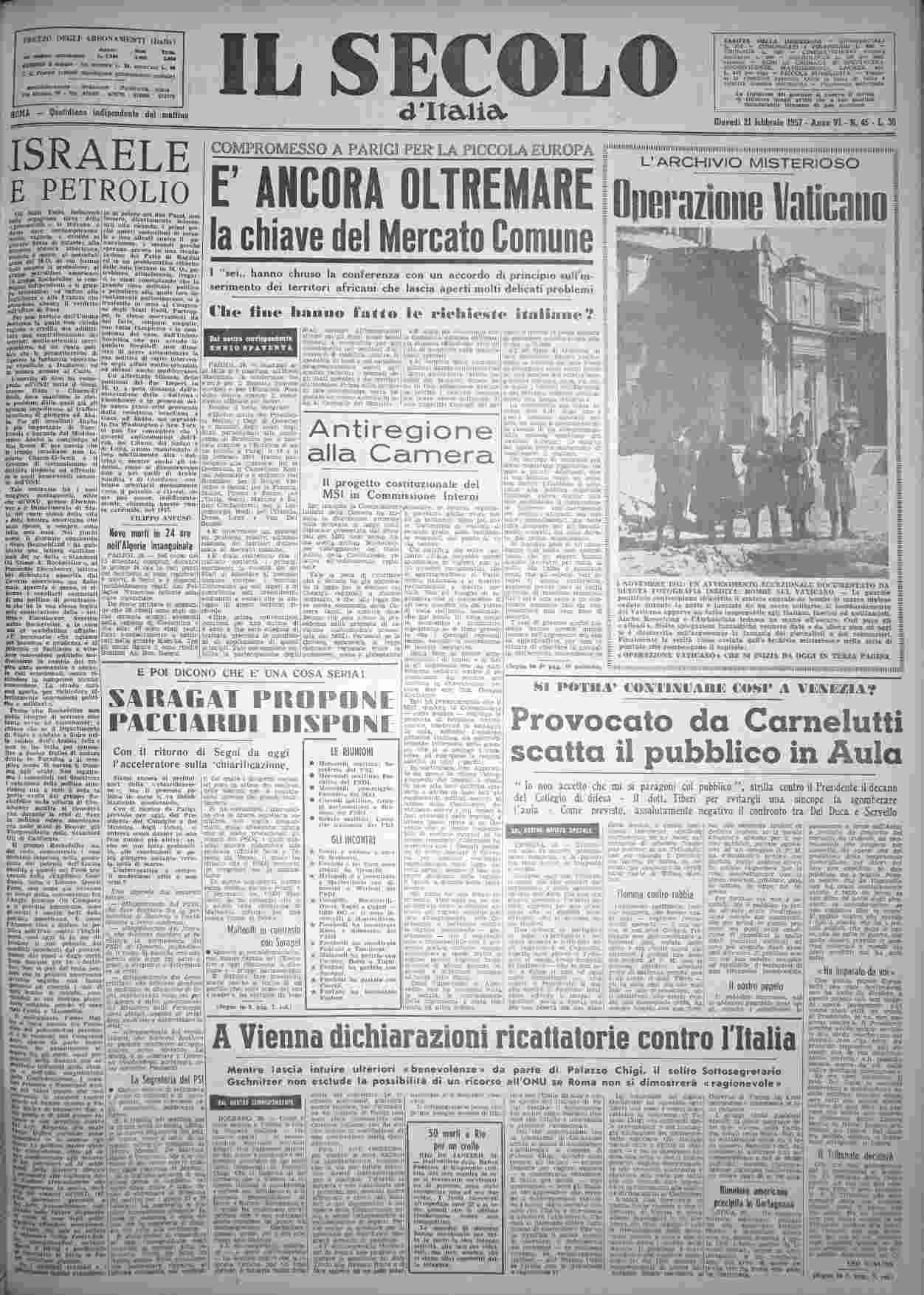 giovedì 21 febbraio 1957