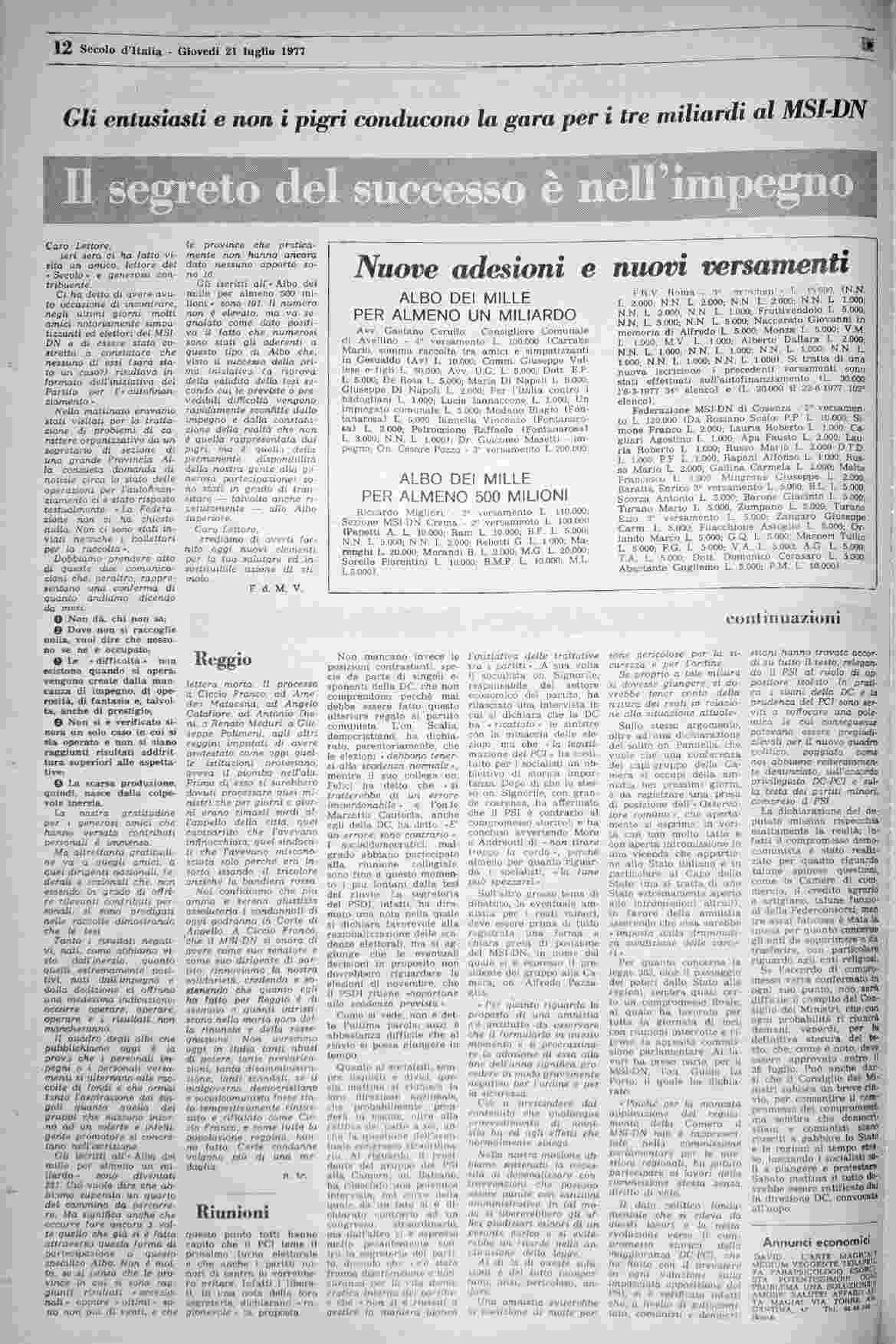 giovedì 21 luglio 1977