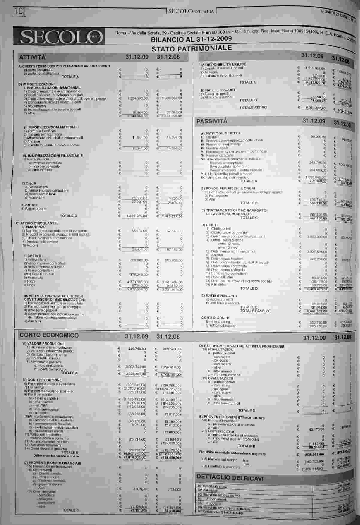 giovedì 22 luglio 2010