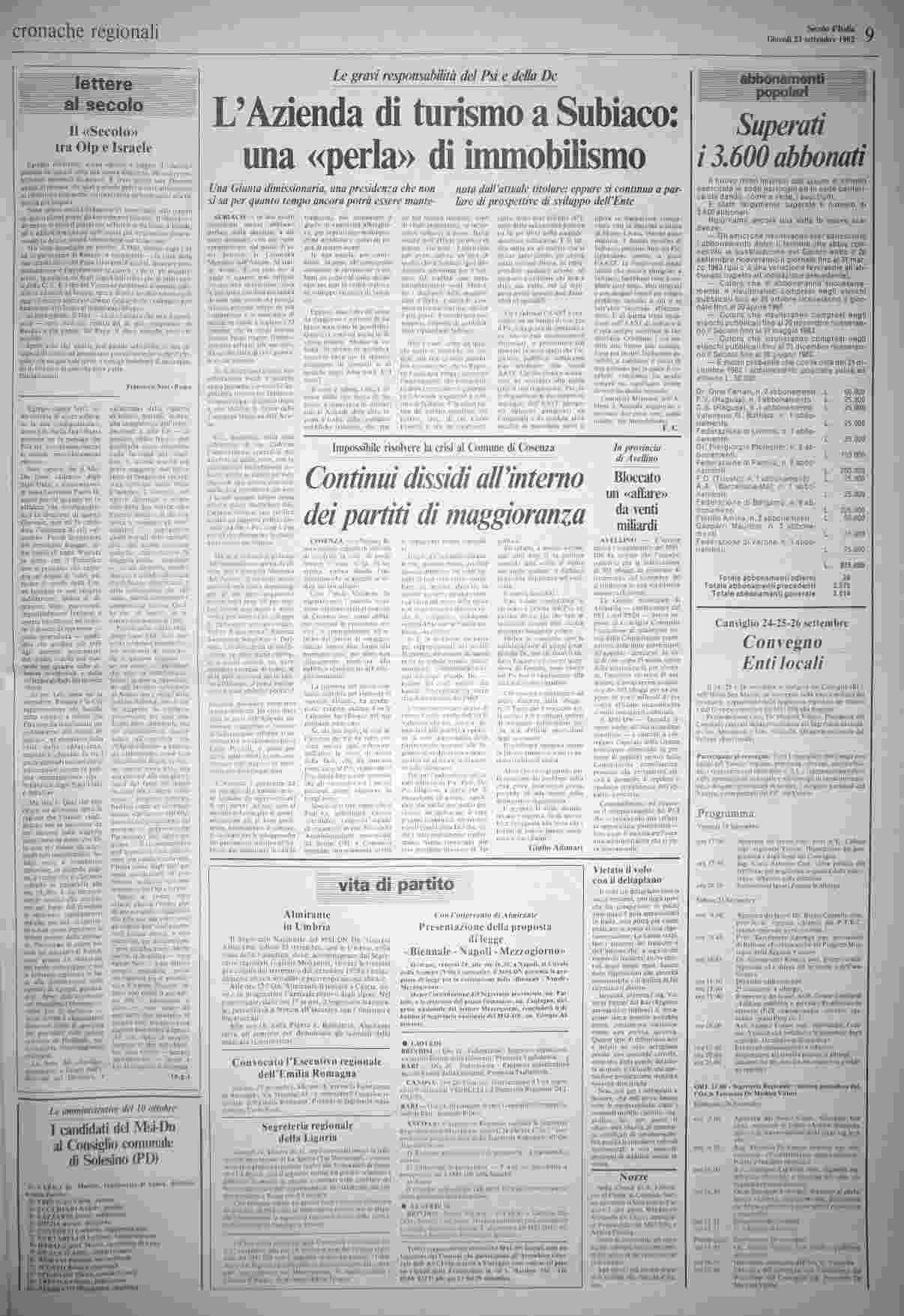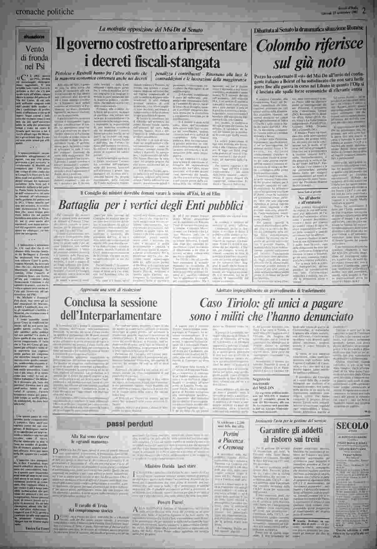 giovedì 23 settembre 1982