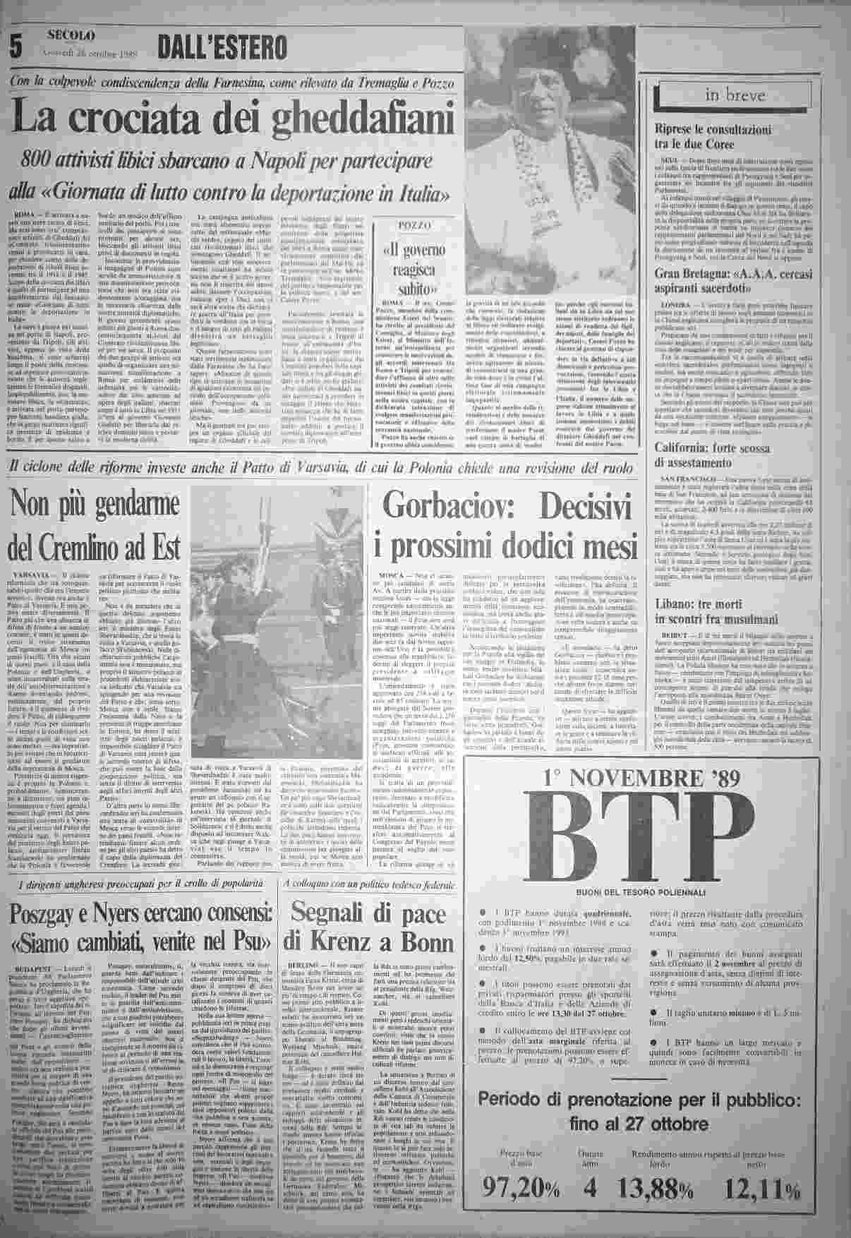 giovedì 26 ottobre 1989