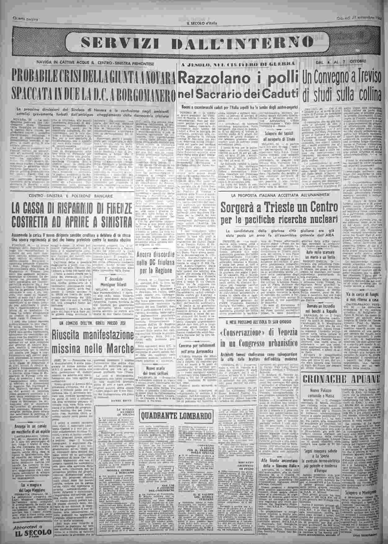 giovedì 27 settembre 1962