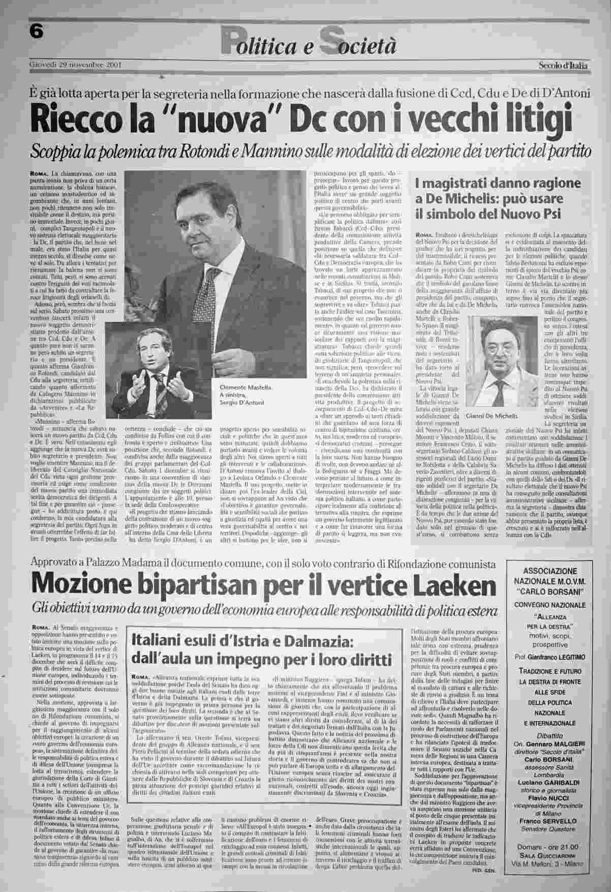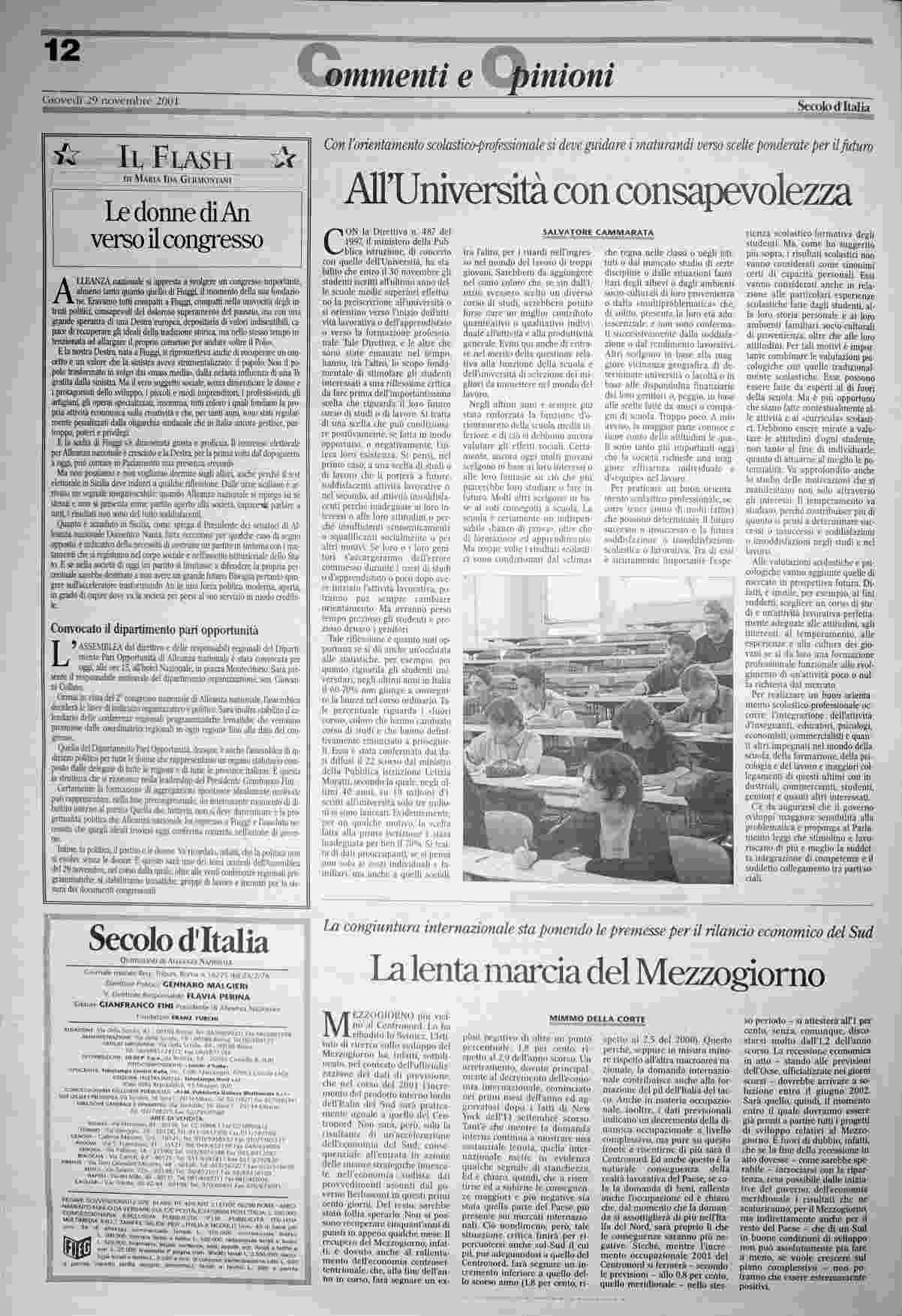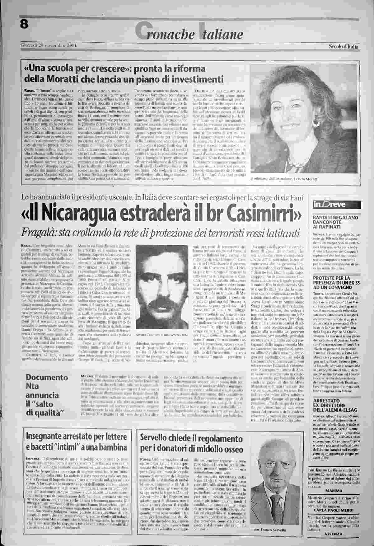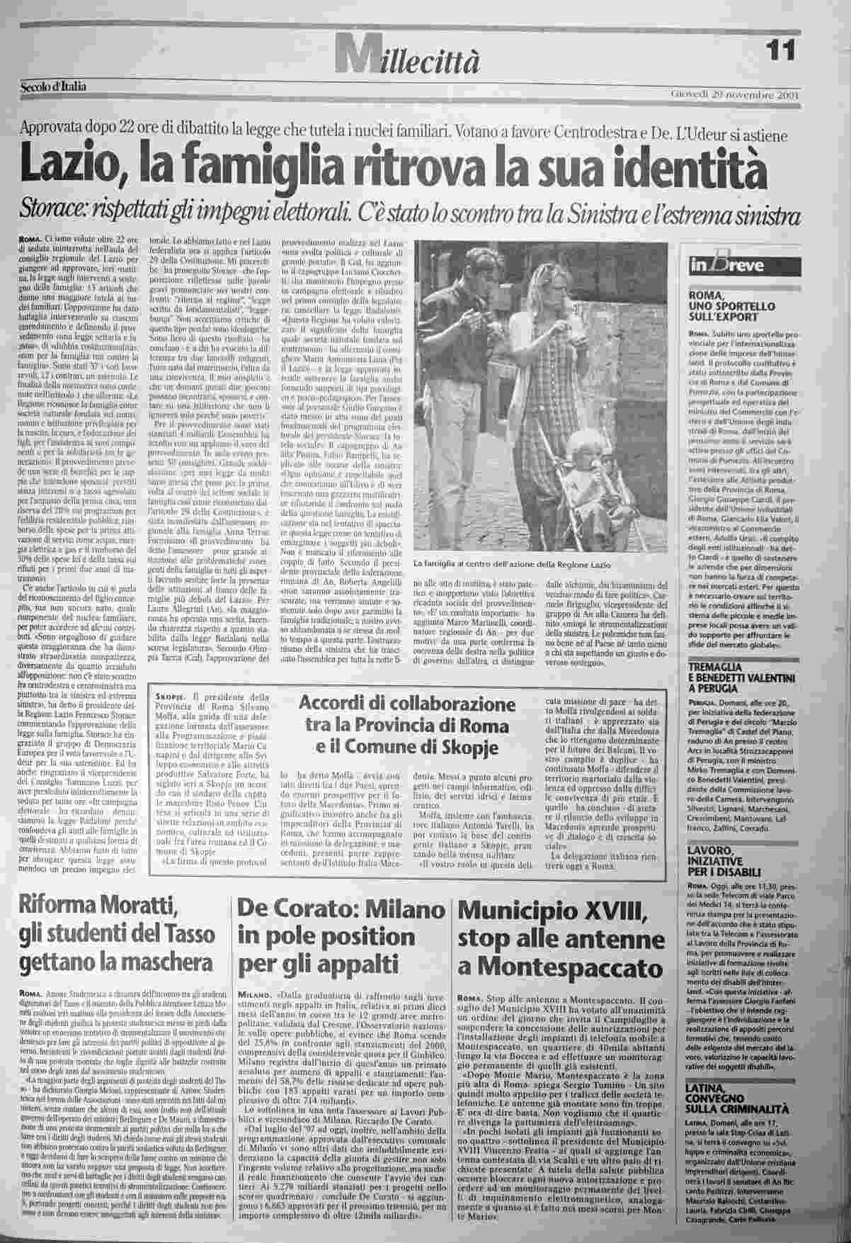 giovedì 29 novembre 2001