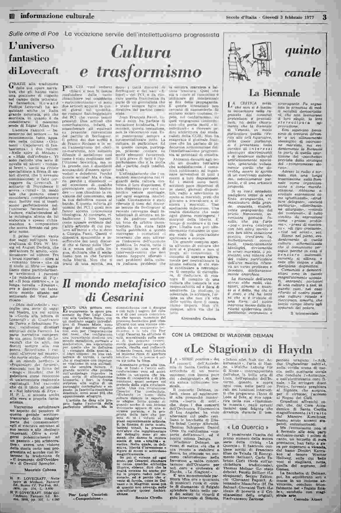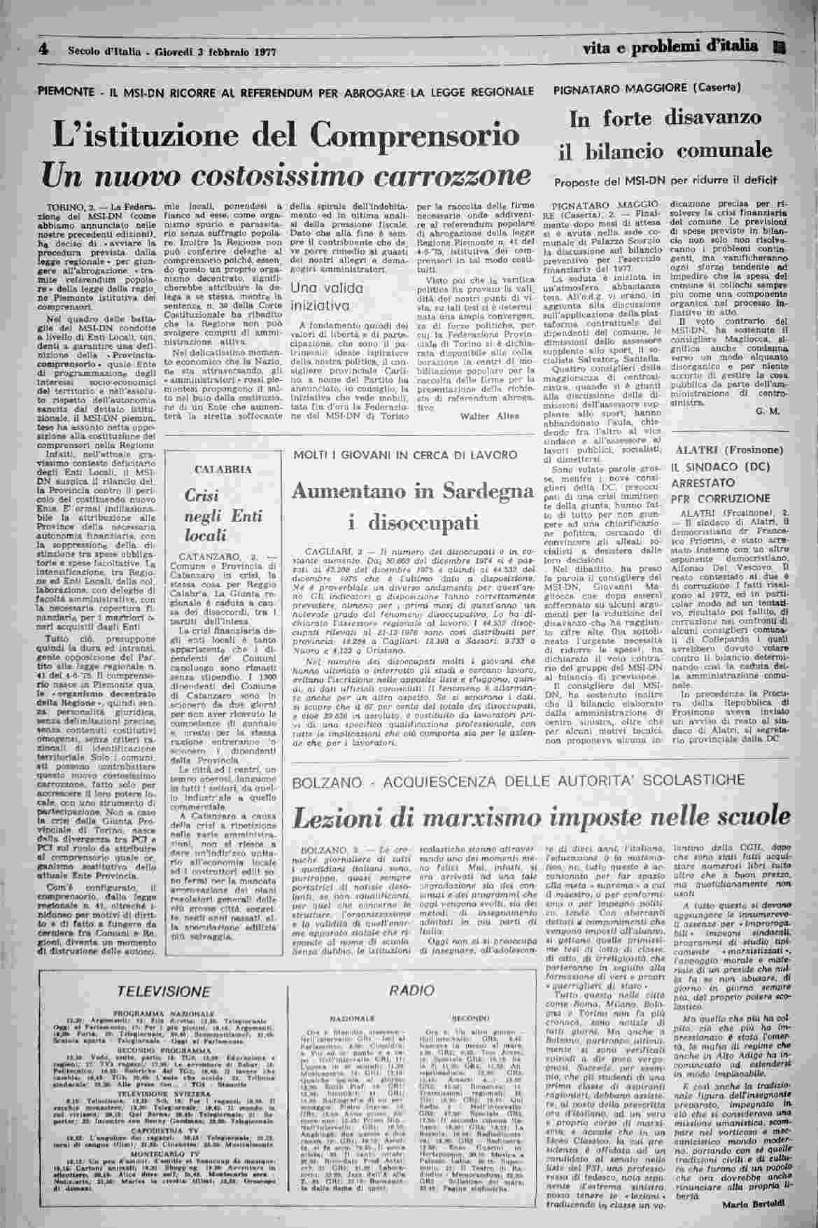 giovedì 3 febbraio 1977