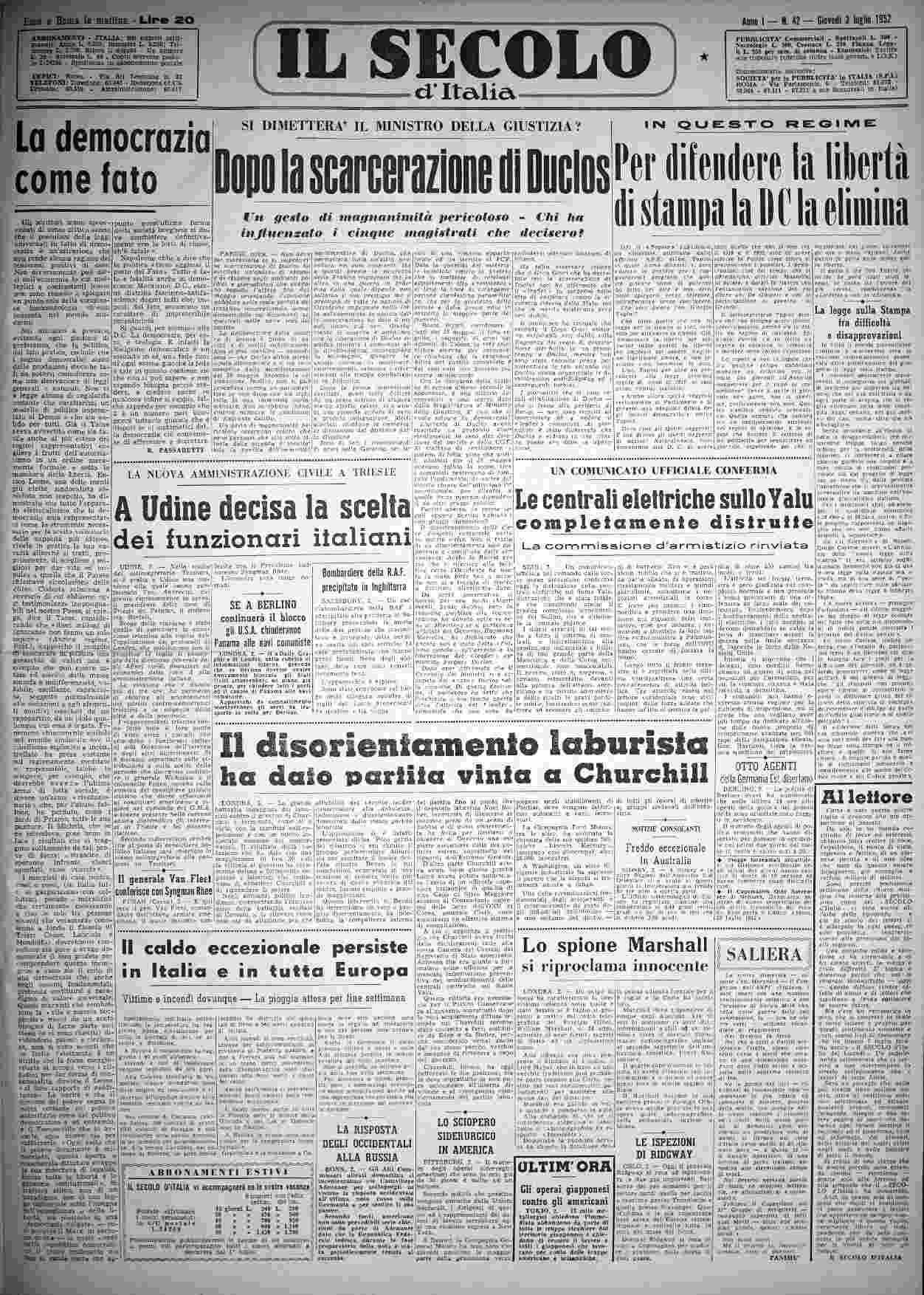 giovedì 3 luglio 1952
